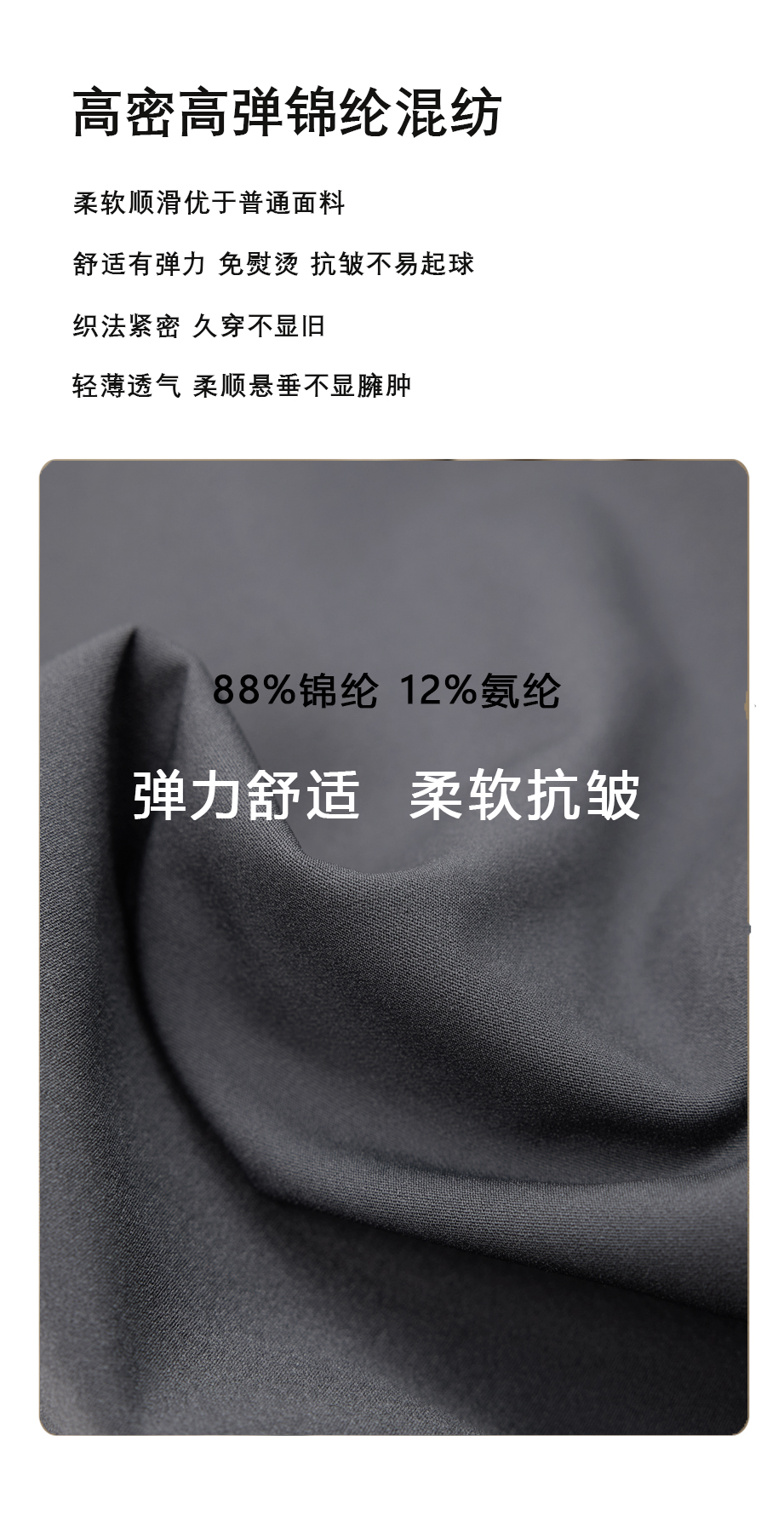 | 款名: | 烟灰色锦纶混纺高弹速干春夏休闲裤 | |||||