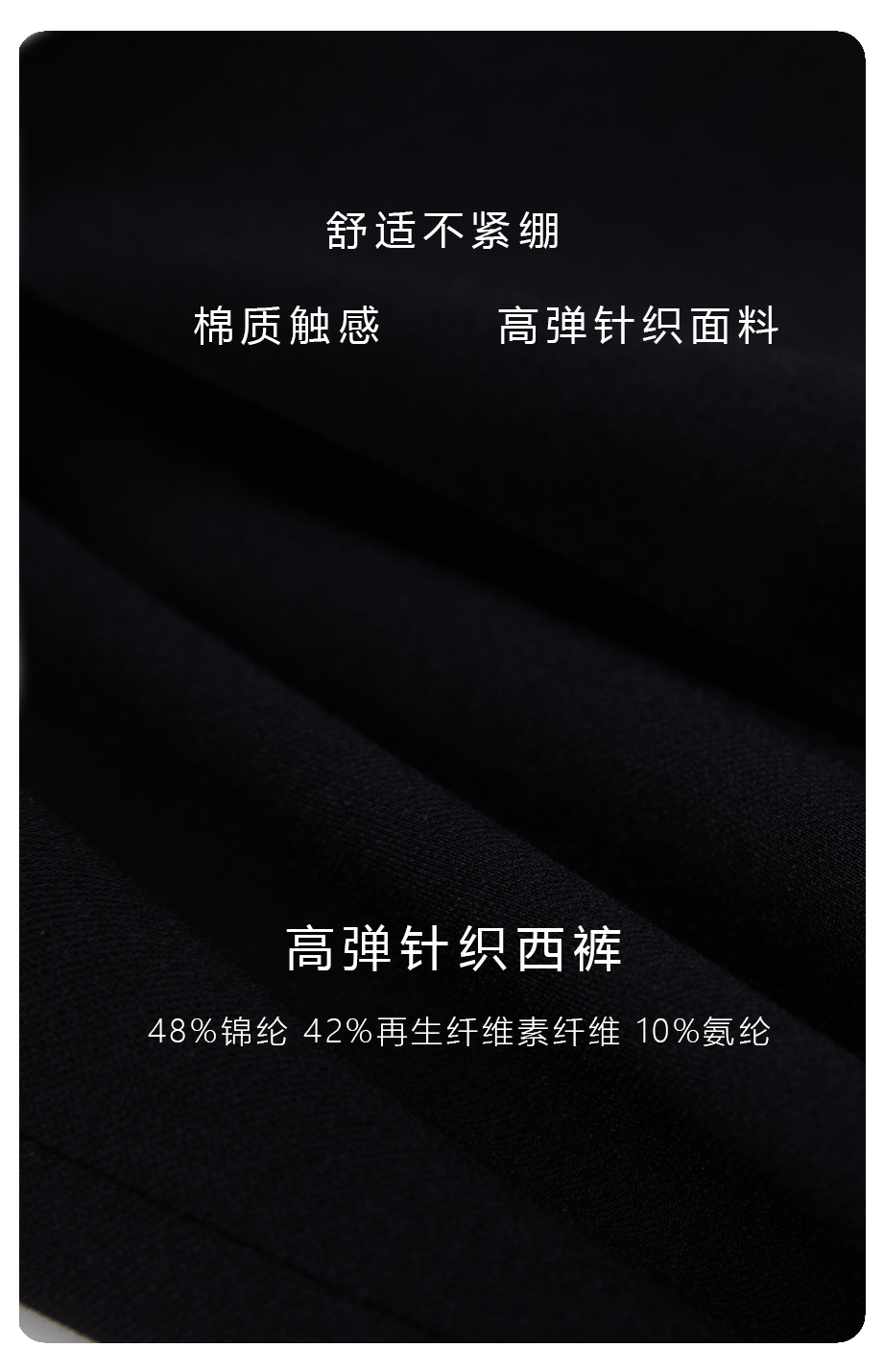 藏蓝色高弹锦纶再生纤维素纤维混纺春夏针织西裤 |