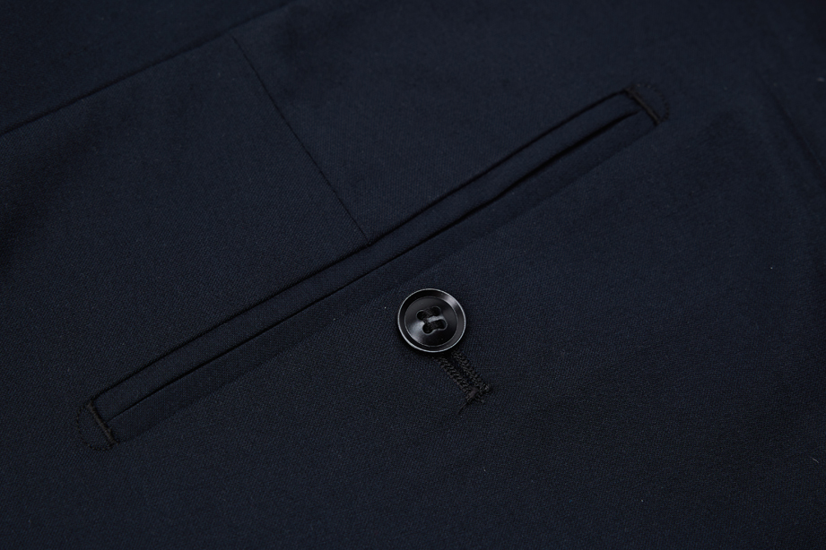 平整精细后双开线口袋,一次开机形成上下唇精美纹和,简约大气。