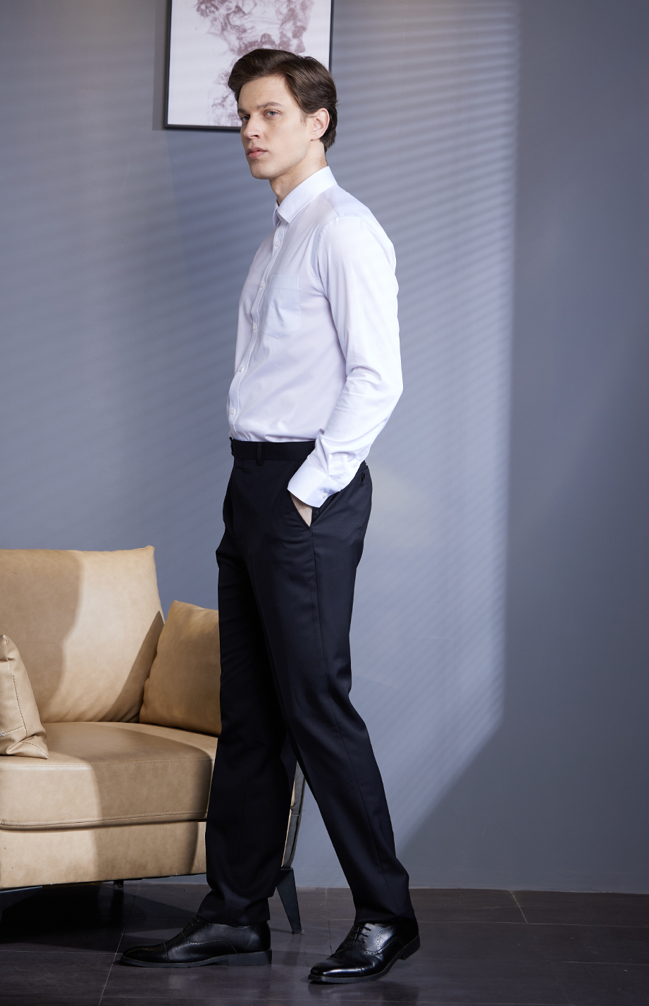 平整精细后双开线口袋,一次开机形成上下唇精美纹和,简约大气。