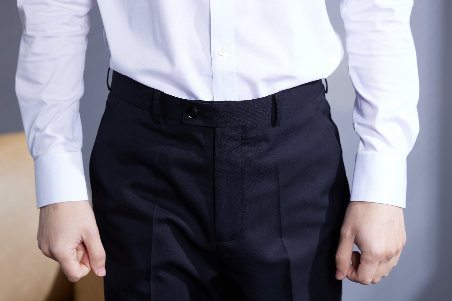 深藏蓝色绵羊毛聚酯莱赛尔纤维混纺春夏西裤 |