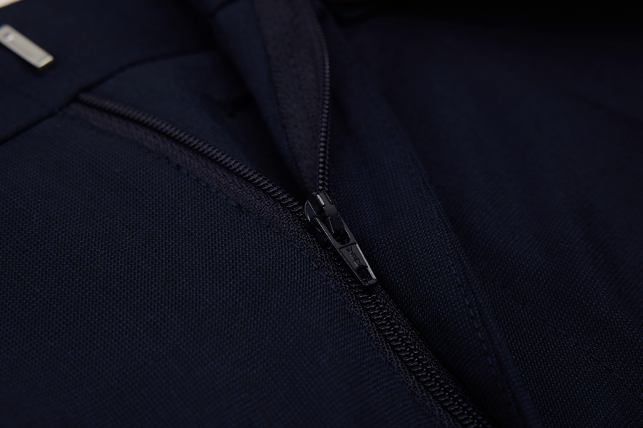 海军蓝鸟眼绵羊毛聚酯莱赛尔纤维混纺春夏西裤 |