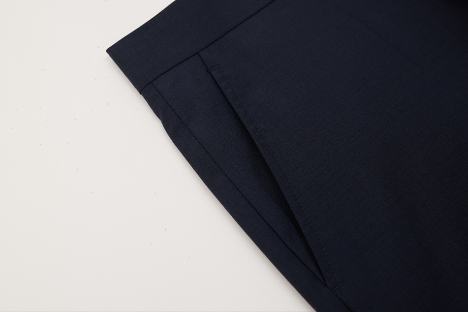 海军蓝平纹绵羊毛聚酯莱赛尔纤维混纺春夏西裤 |