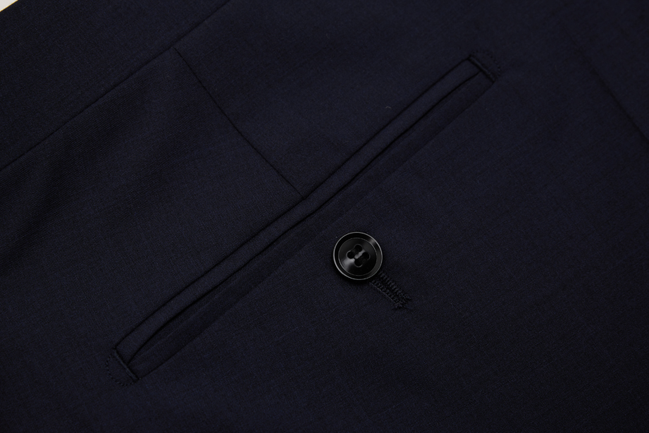平整精细后双开线口袋,一次开机形成上下唇精美纹和,简约大气。