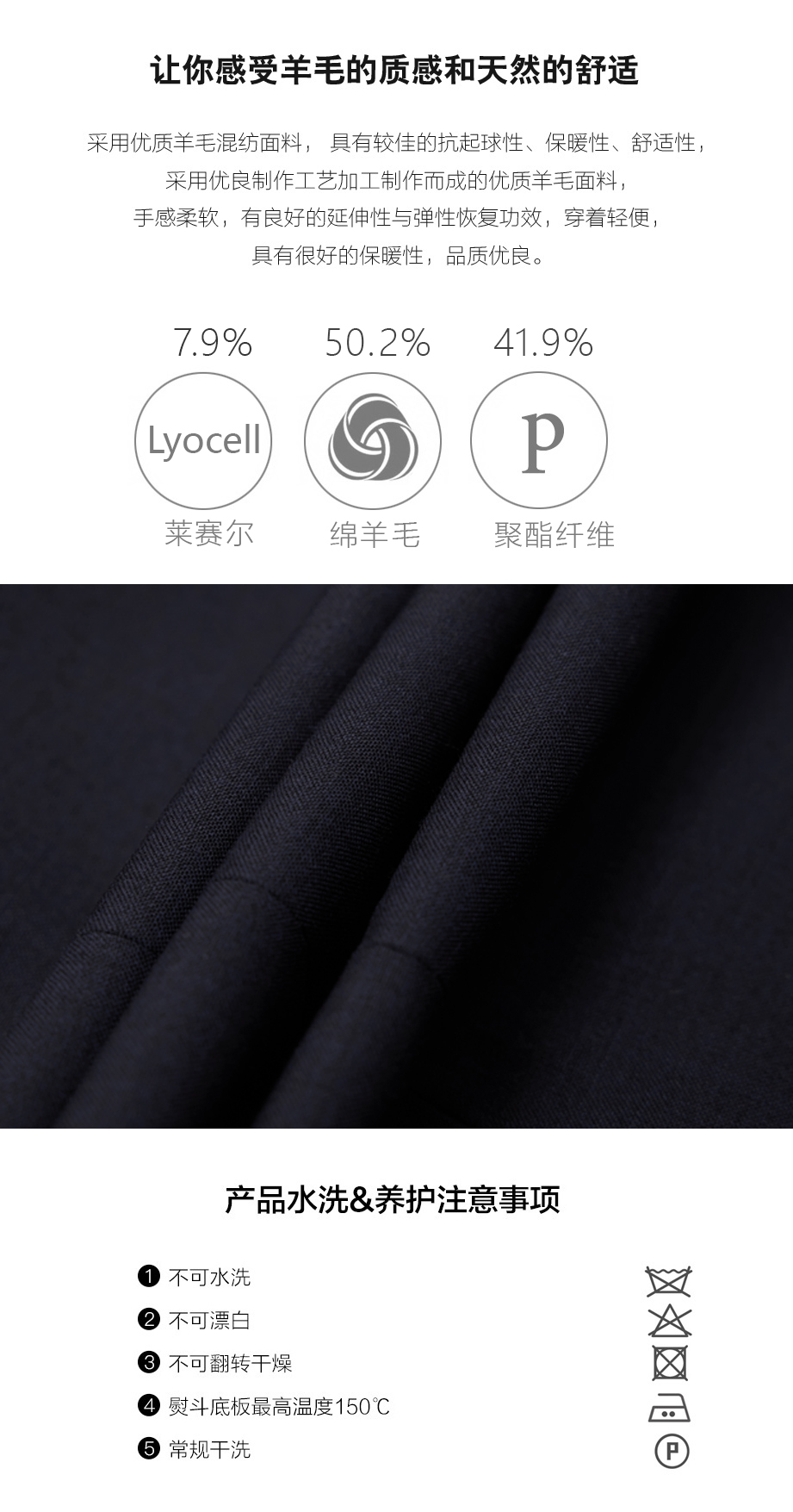 | 款名: | 海军蓝平纹绵羊毛聚酯莱赛尔纤维混纺春夏西裤 | |||