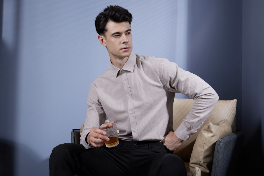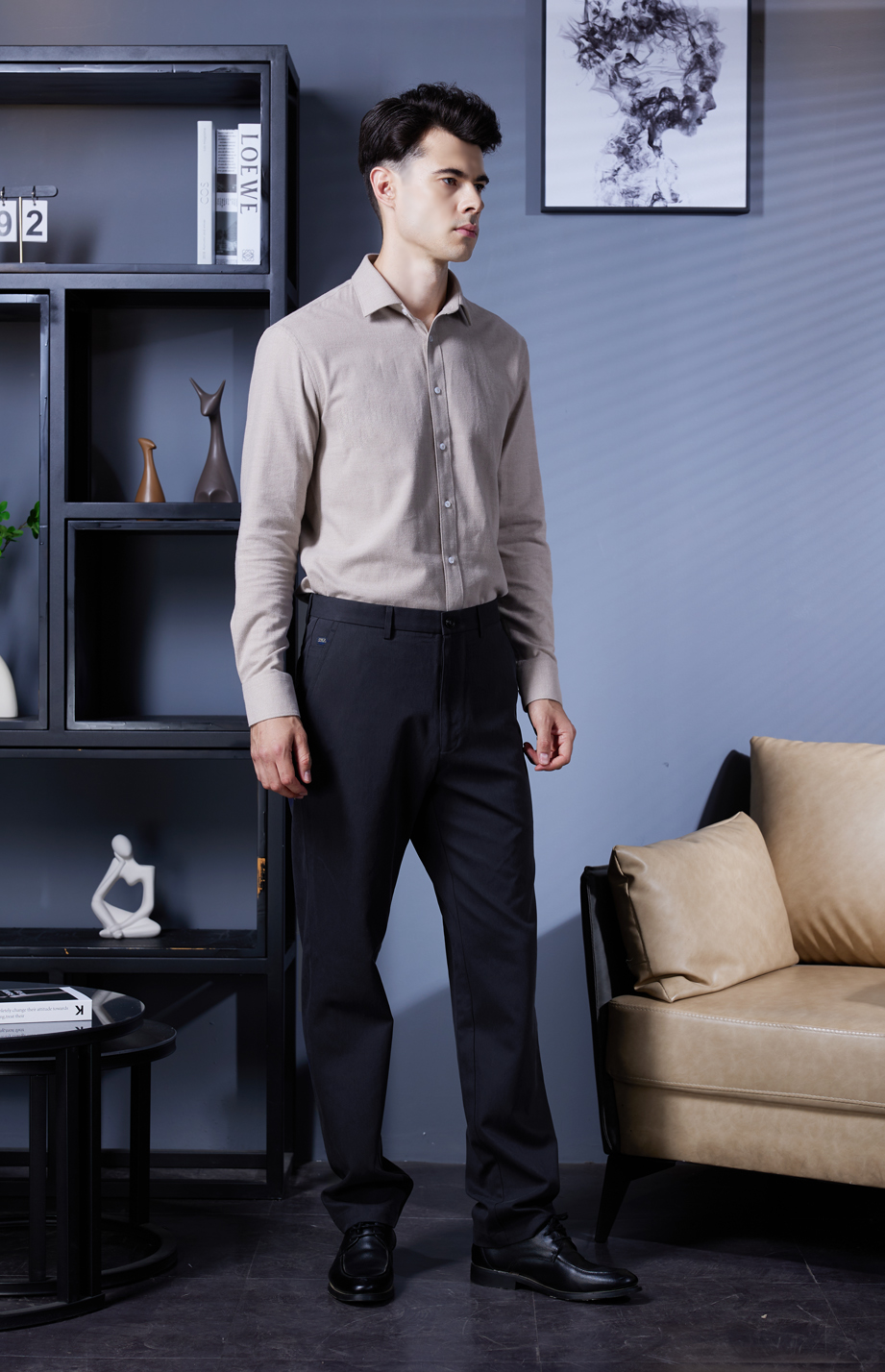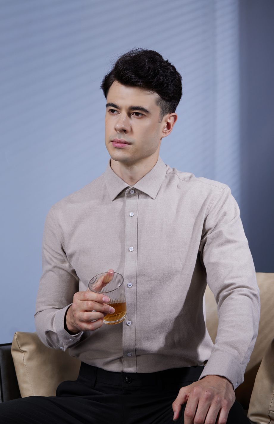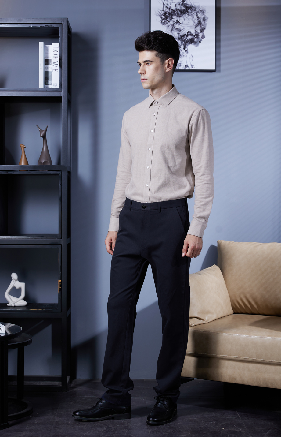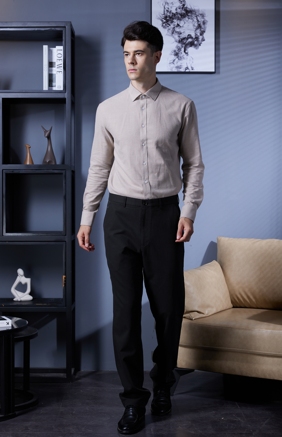 | 款名: | 浅卡其棉涤弹力双面拉绒长袖衬衫 | |||