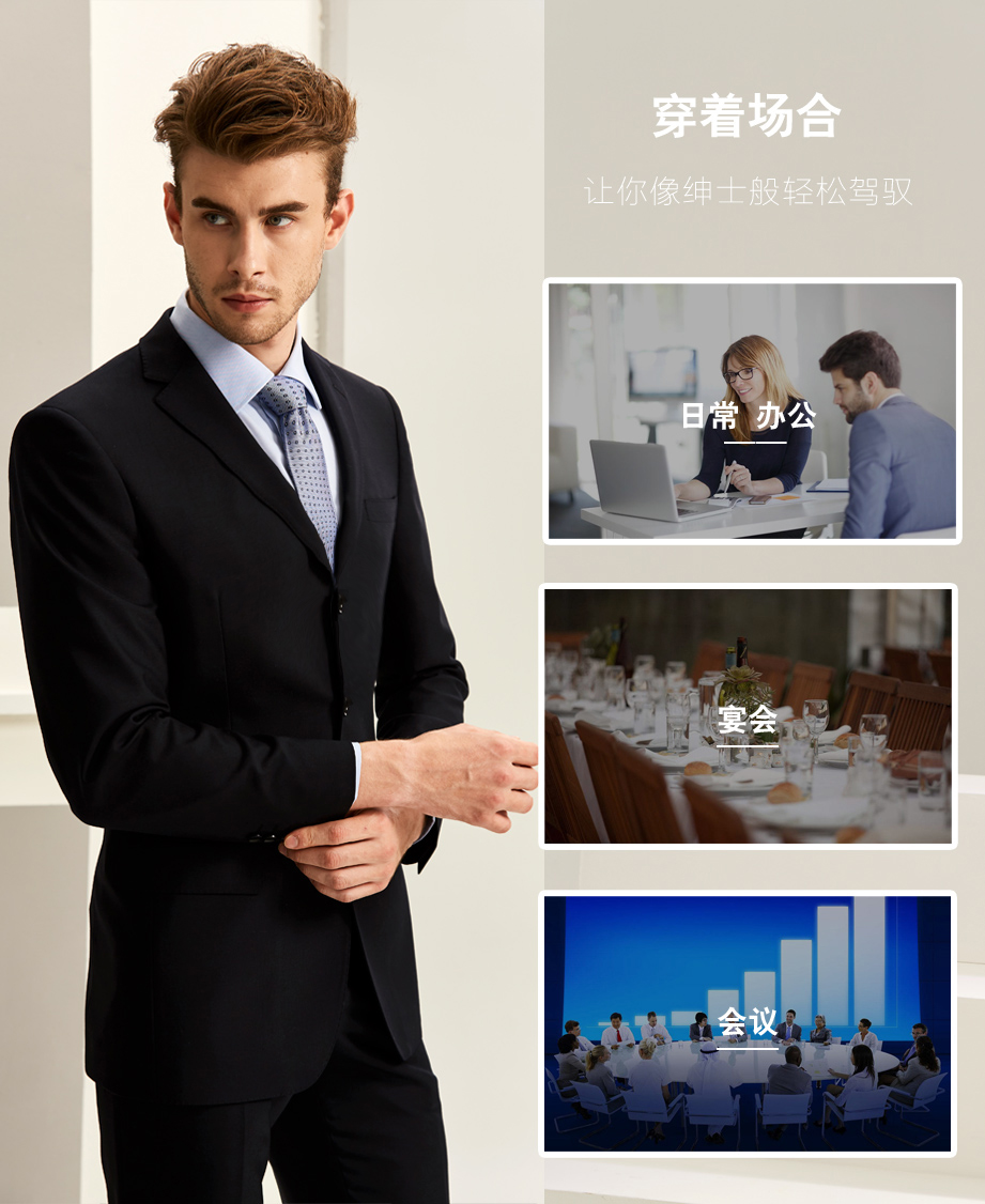 | 款名: | 藏蓝色三粒扣无衩羊毛(100%毛)贡丝锦春秋商务西装上衣 | |||||