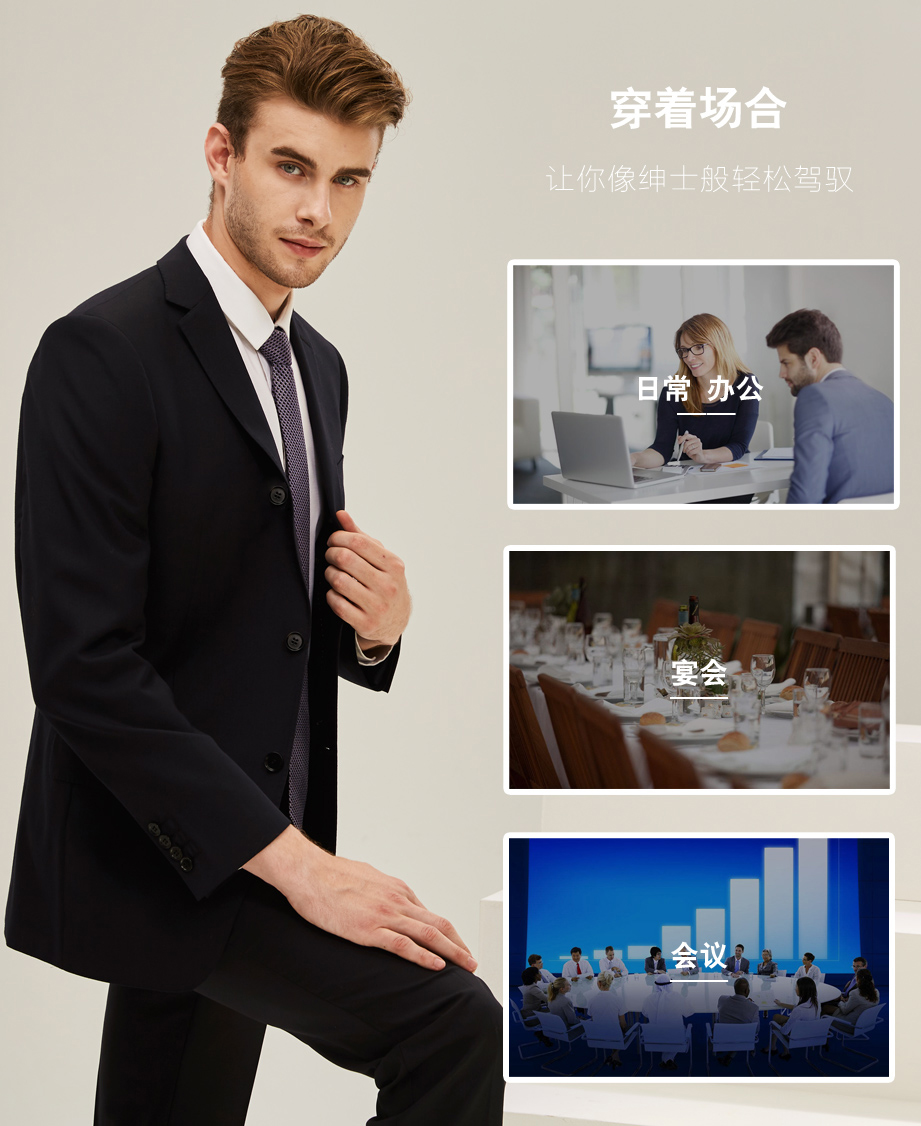 | 款名: | 藏蓝色三粒扣无开衩哔叽羊毛混纺(48.3%毛)平驳领商务西装上衣 | |||