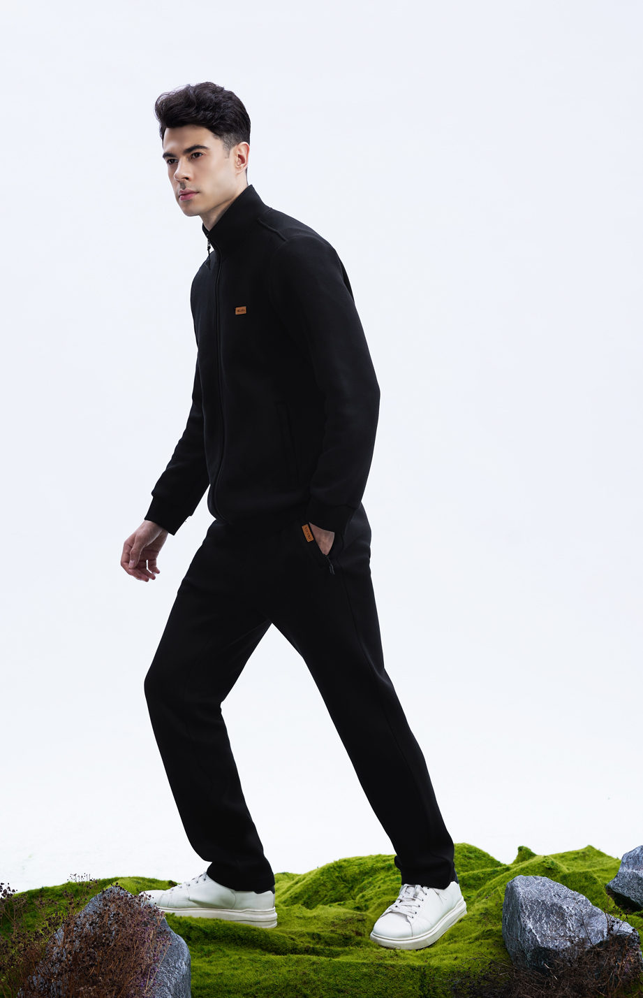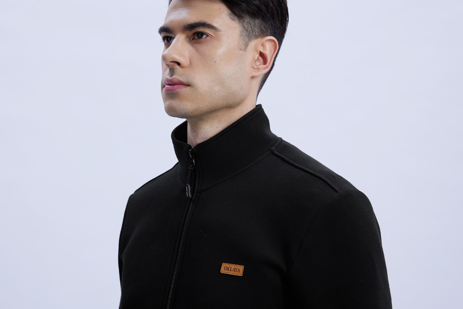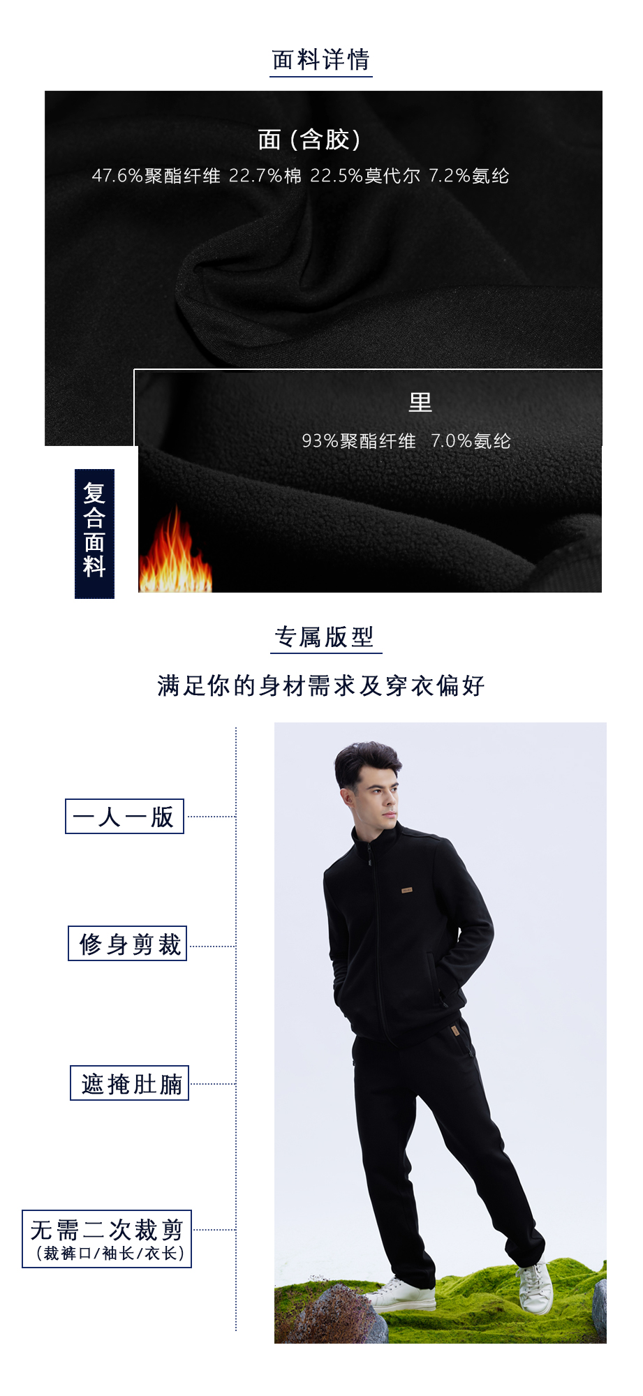 | 款名: | 黑色棉莫代尔混纺带挂面立翻领加绒运动装上衣 | |||