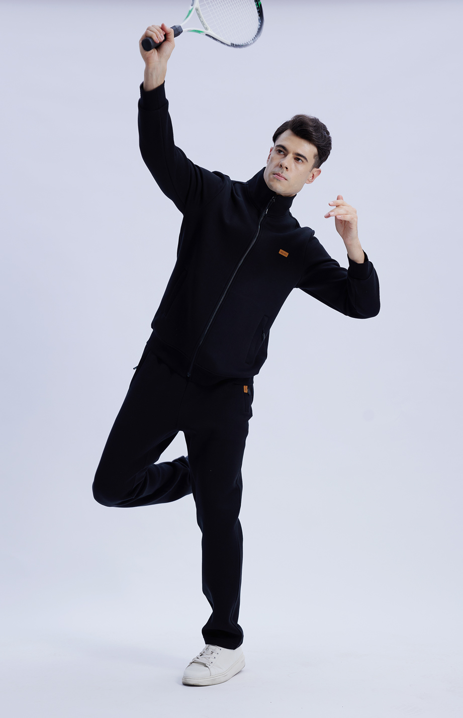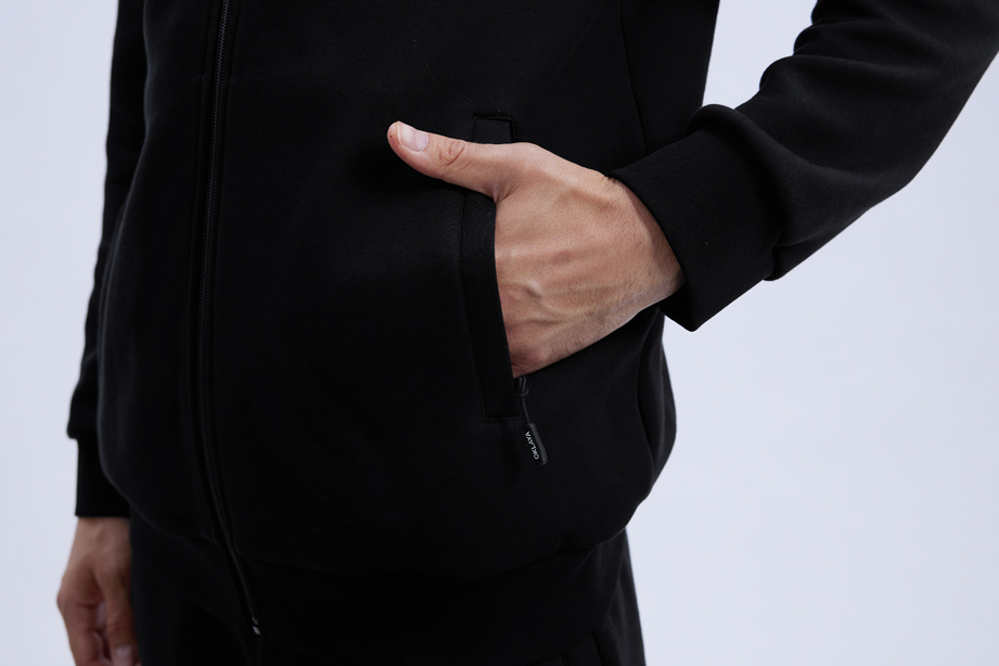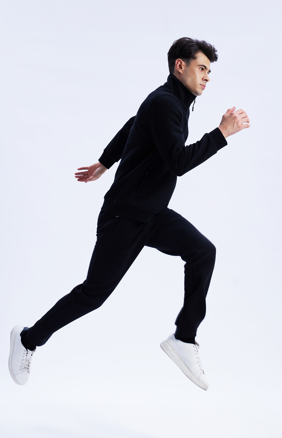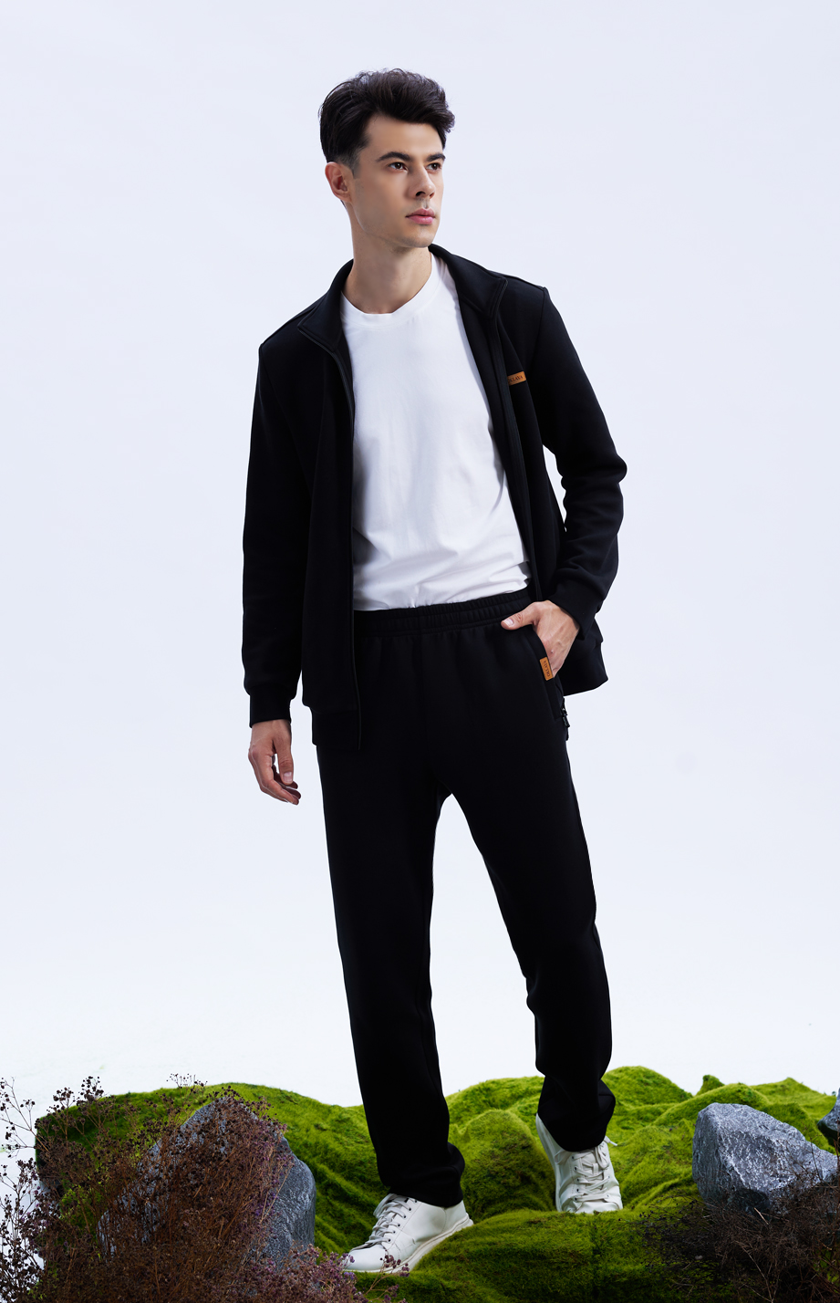 | 款名: | 黑色棉莫代尔混纺带挂面立翻领加绒运动装上衣 | |||