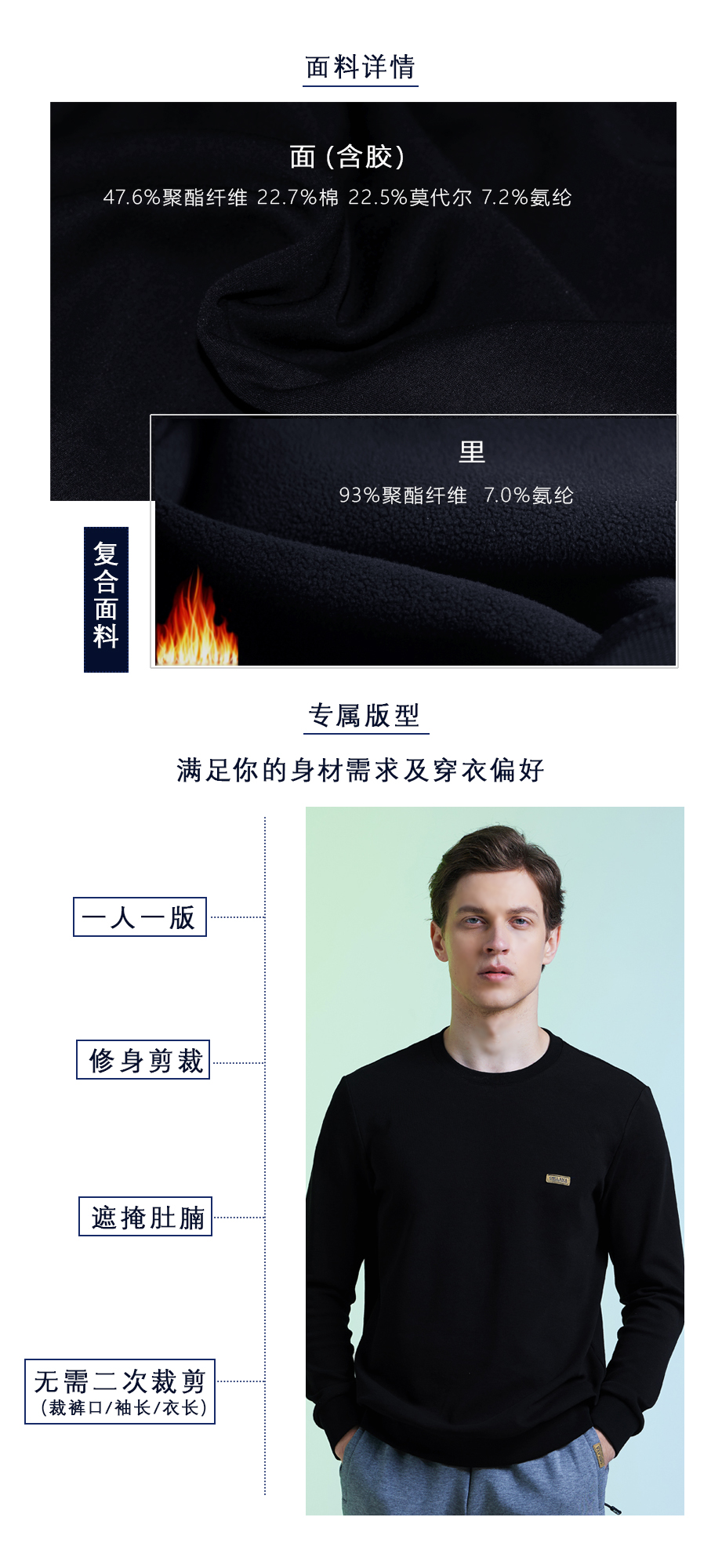 | 款名: | 藏蓝色棉莫代尔混纺加绒圆领卫衣 | |||