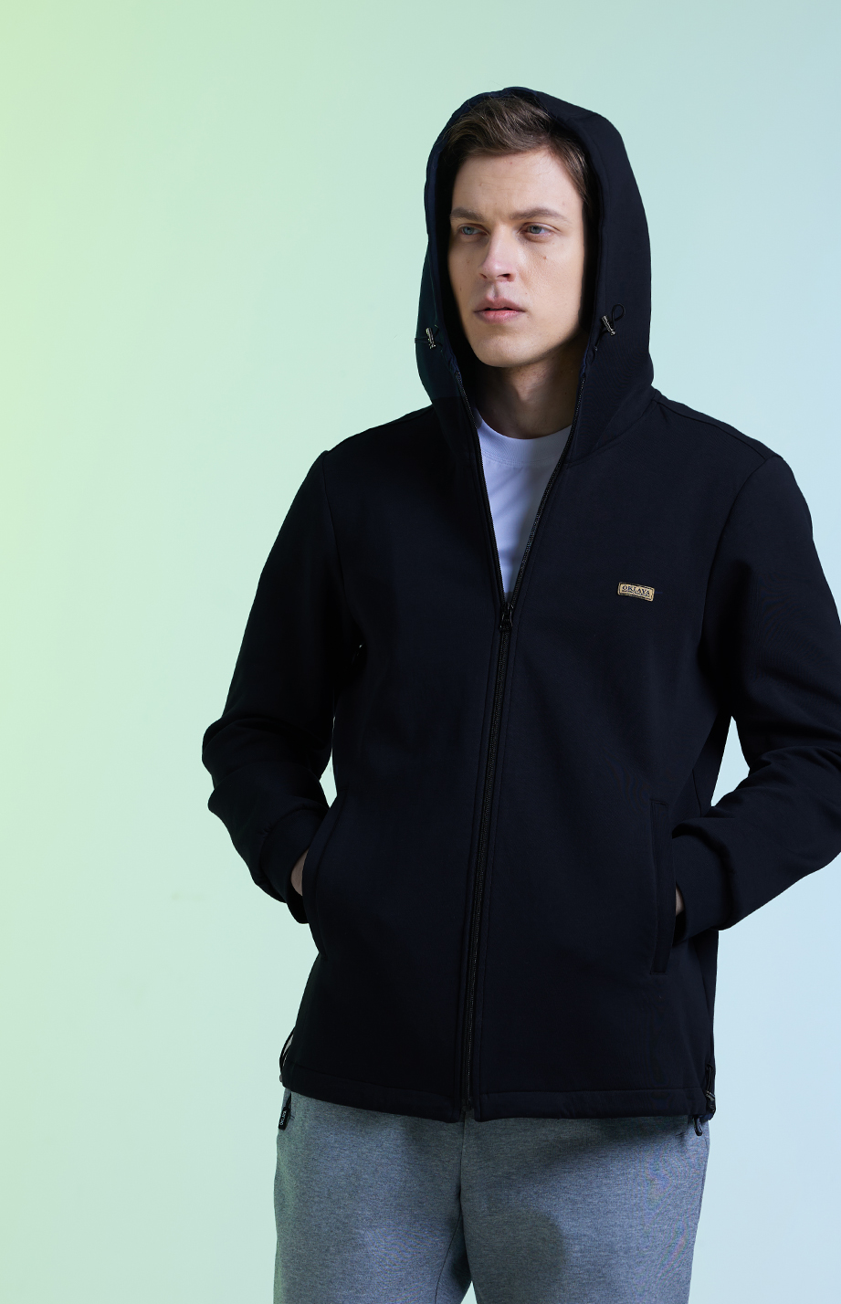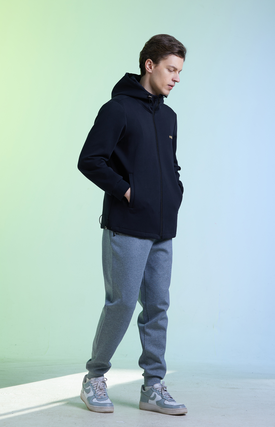 | 款名: | 藏蓝色棉莫代尔混纺加绒连帽运动装上衣 | |||