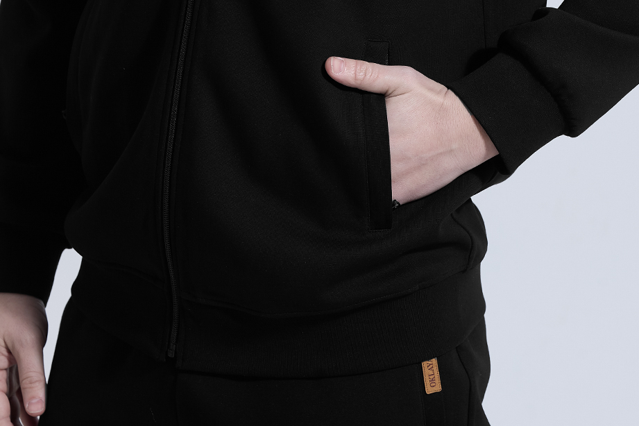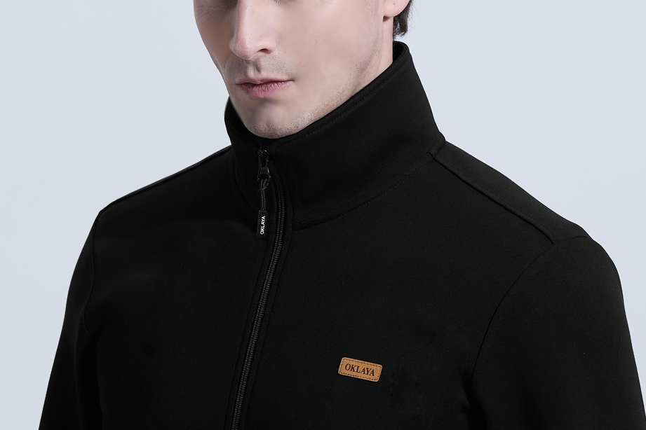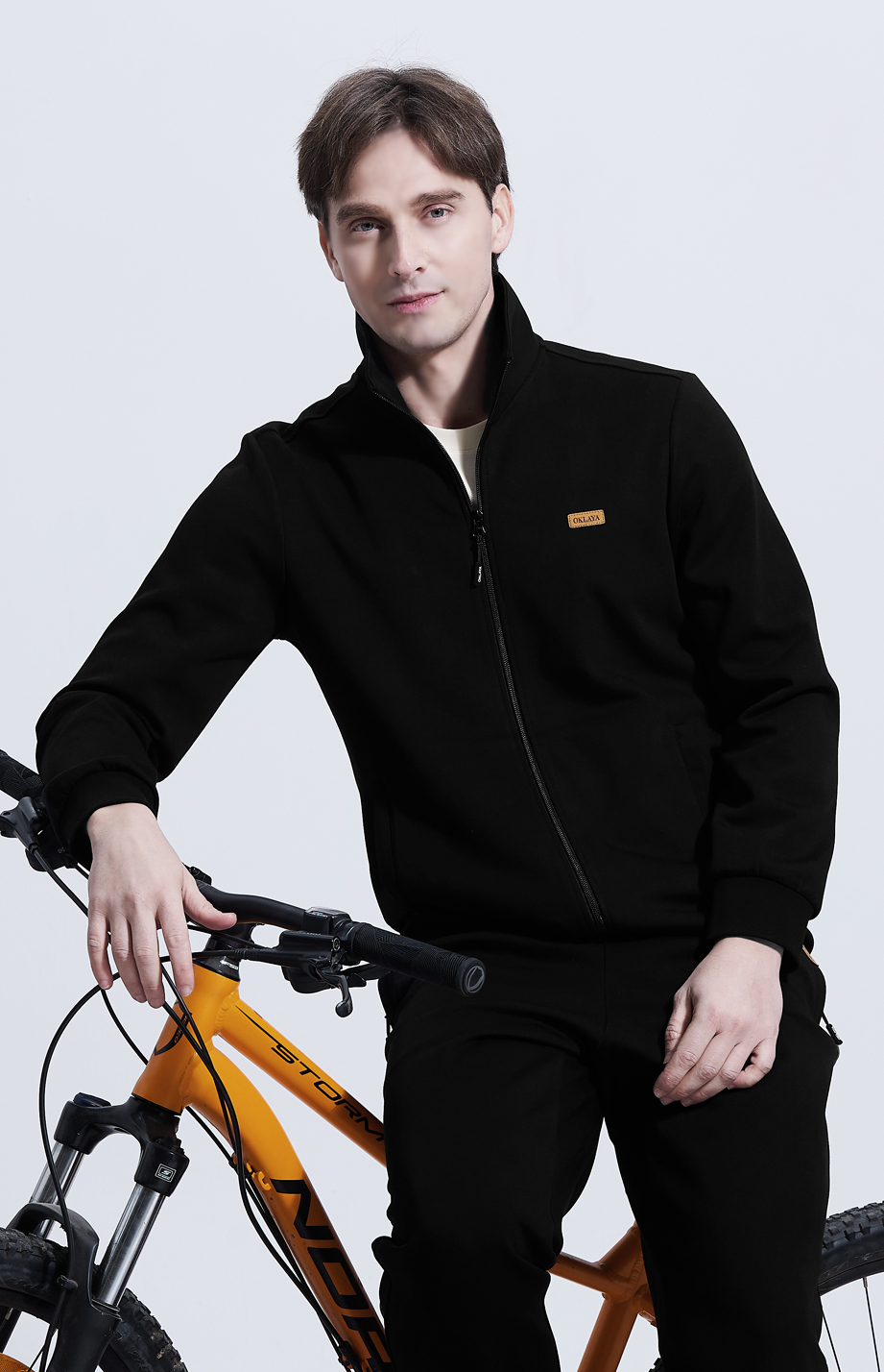 | 款名: | 黑色棉聚酯纤维混纺有挂面立翻领春夏商务运动装上衣 | |||