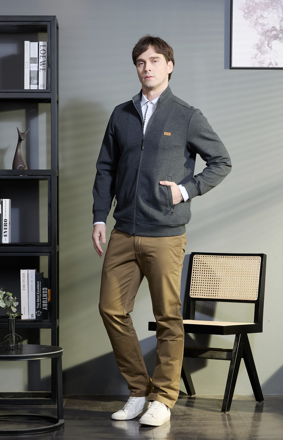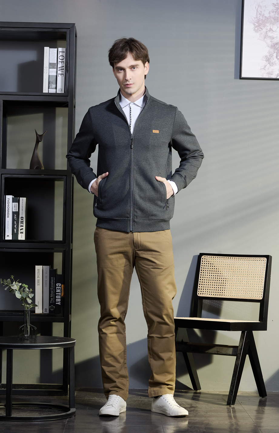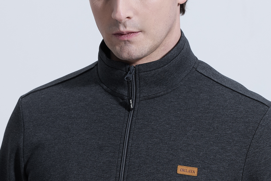 | 款名: | 炭灰色棉聚酯纤维混纺有挂面立领春夏商务运动装上衣 | |||