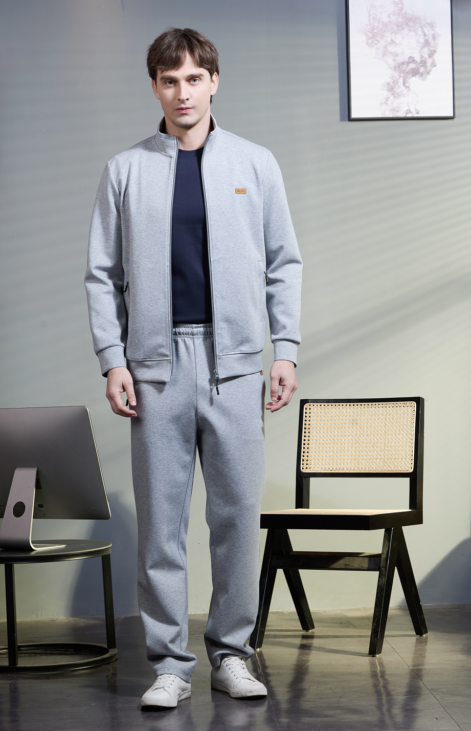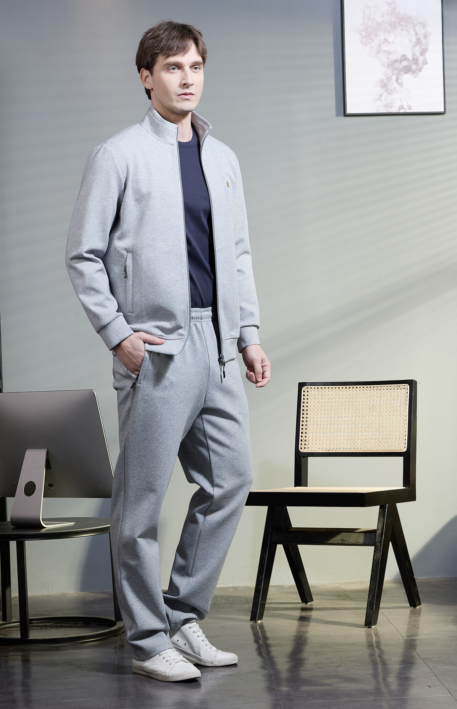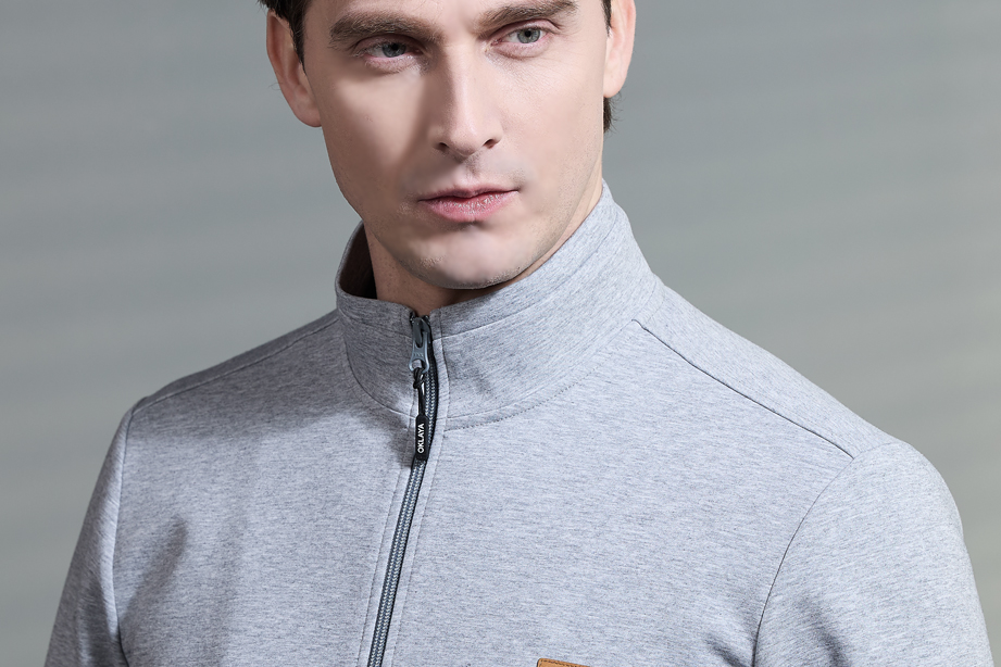 | 款名: | 浅灰色棉聚酯纤维混纺有挂面立领春夏商务运动装上衣 | |||