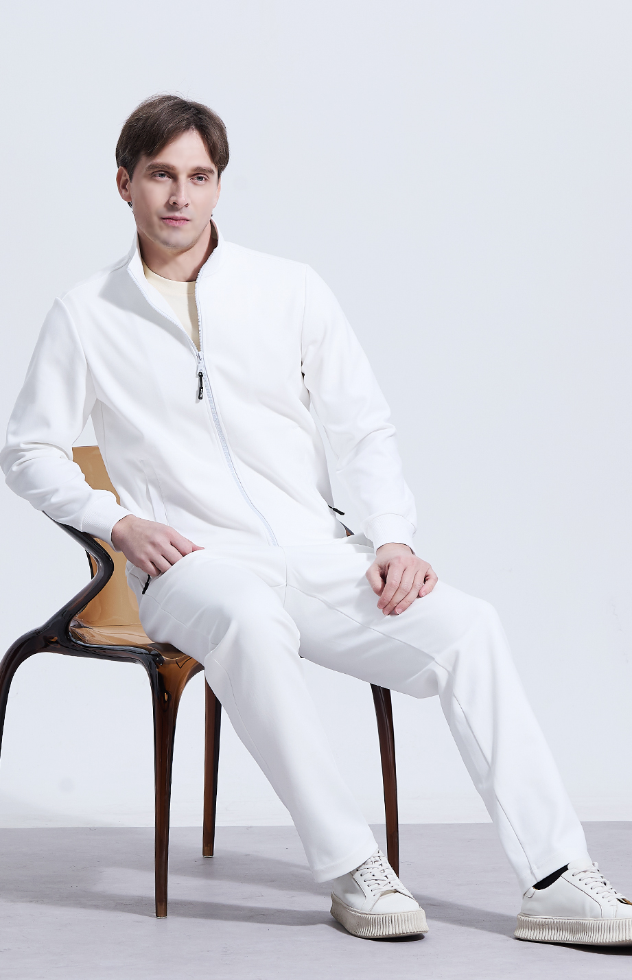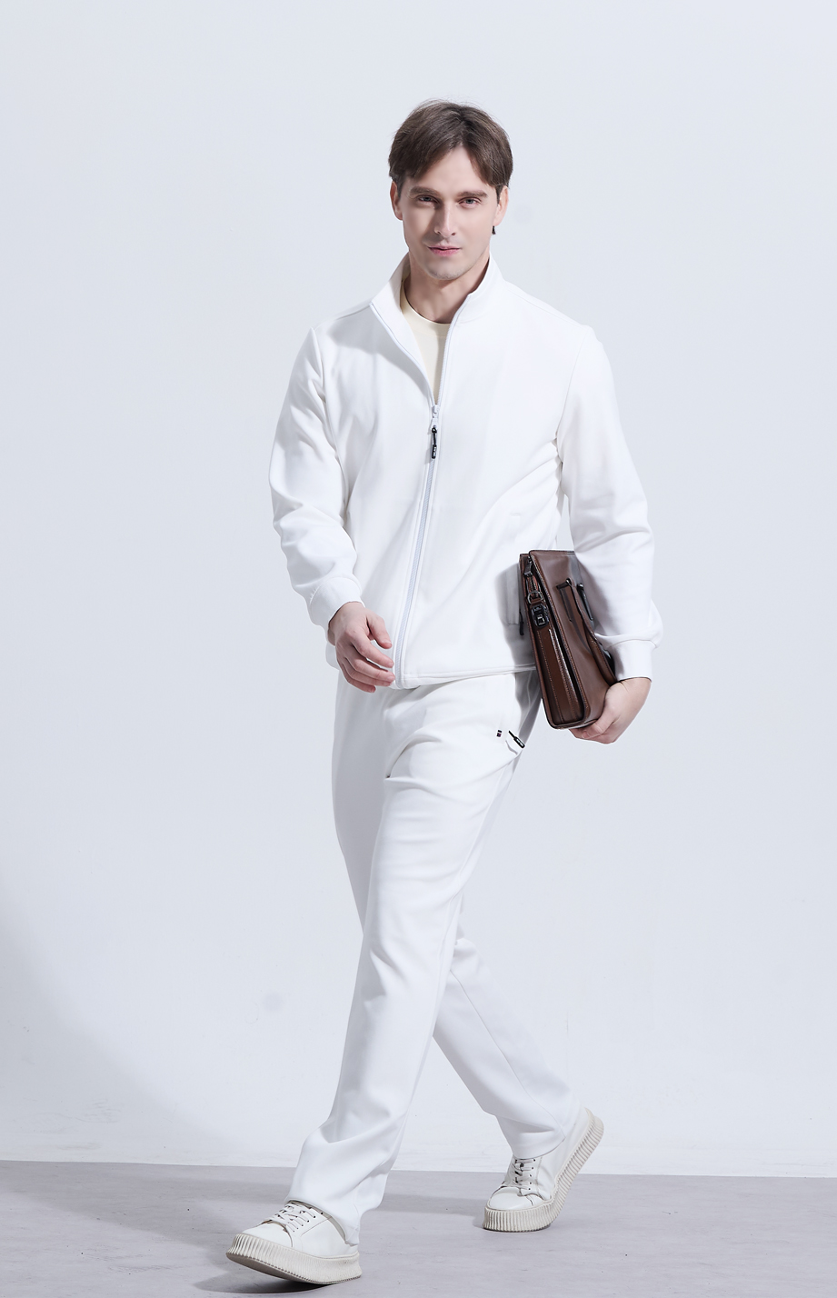 | 款名: | 白色春夏35.6%棉聚酯纤维混纺散口运动裤 | |||||