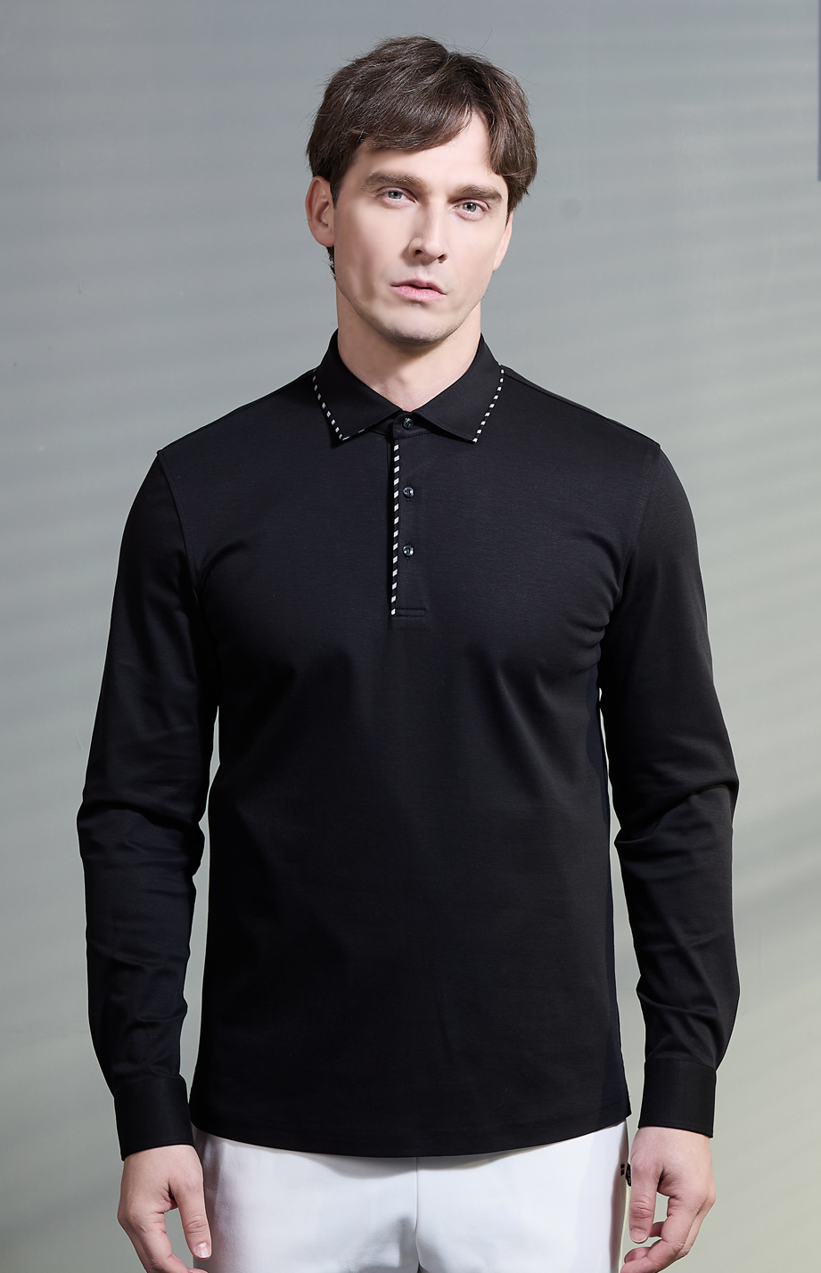 | 款名: | 黑色30%天丝棉汉麻混纺丝光长袖polo衫 | |||||