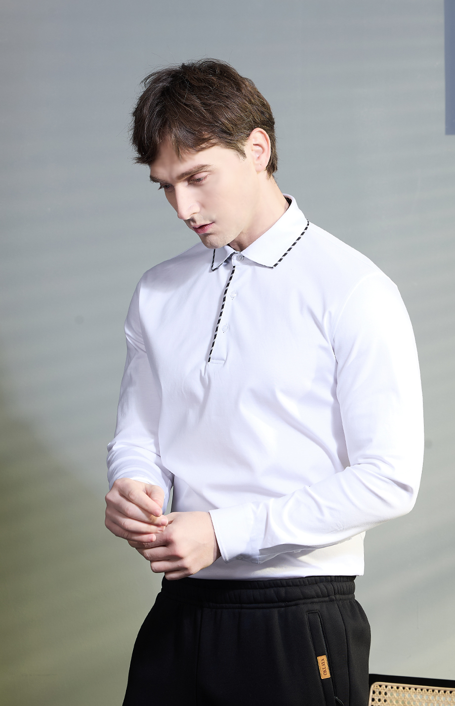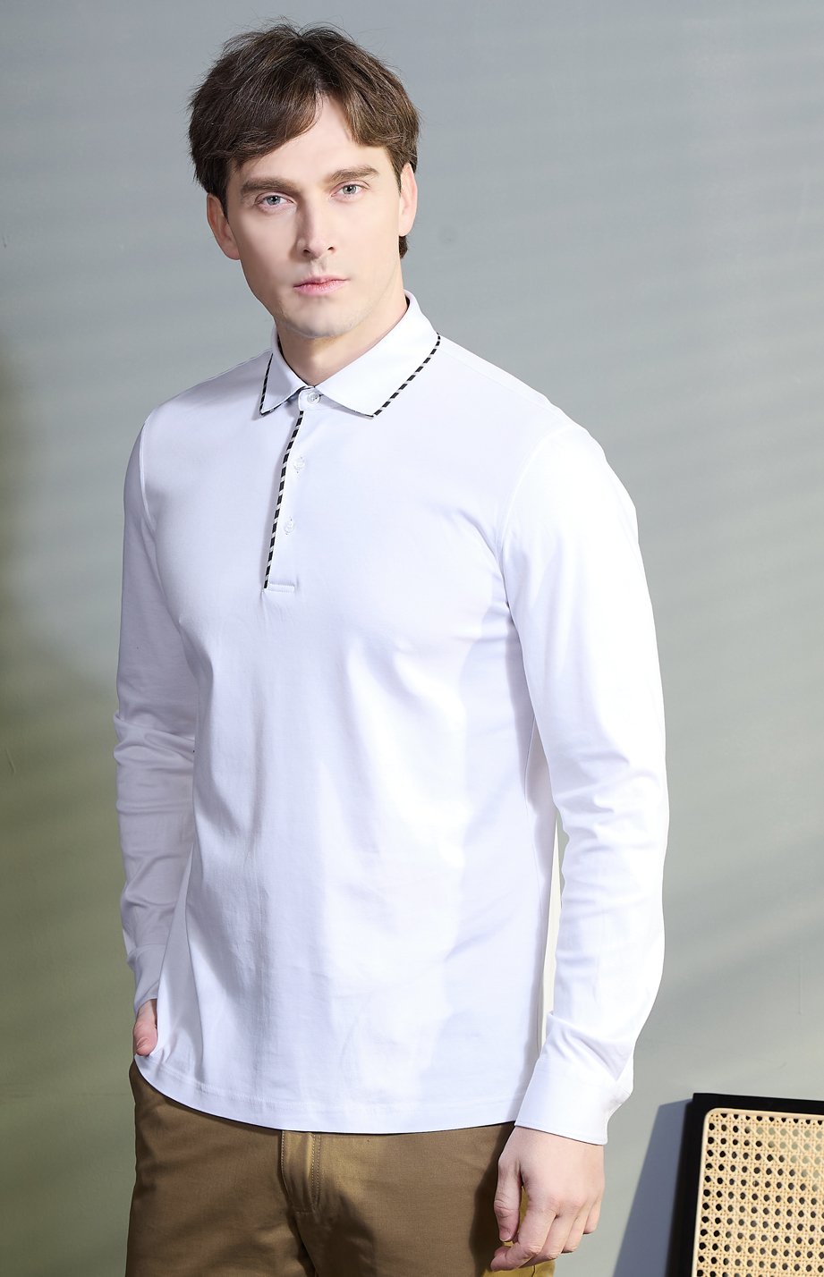 | 款名: | 白色30%天丝棉汉麻混纺丝光长袖polo衫 | |||||
