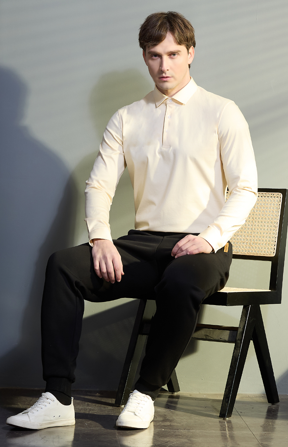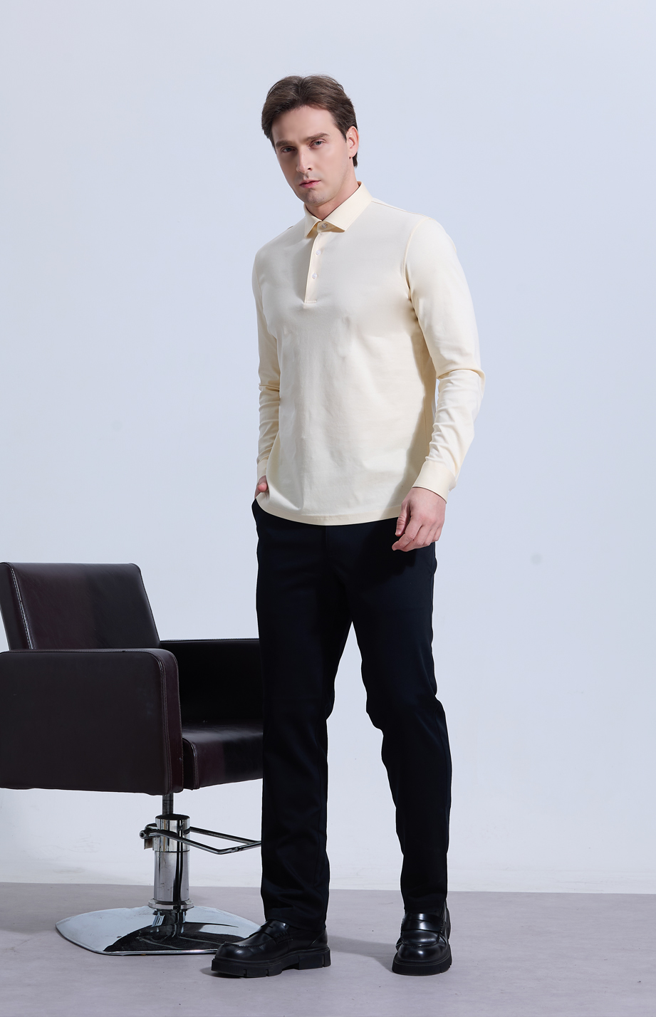 | 款名: | 香槟米30%天丝棉汉麻混纺丝光长袖polo衫 | |||