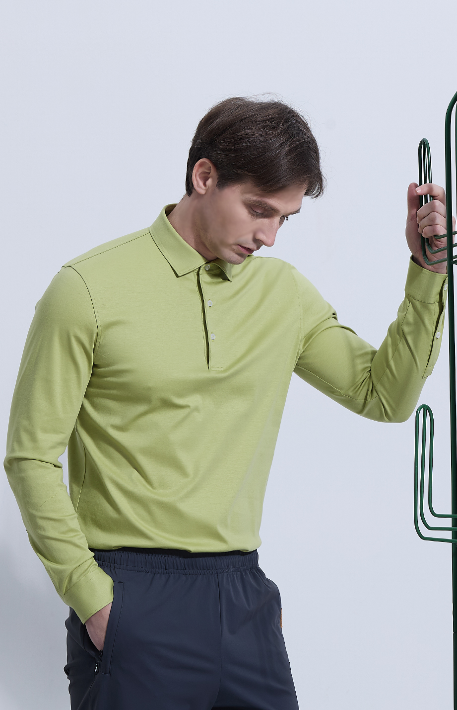 | 款名: | 抹茶绿30%天丝棉汉麻混纺丝光长袖polo衫 | |||||