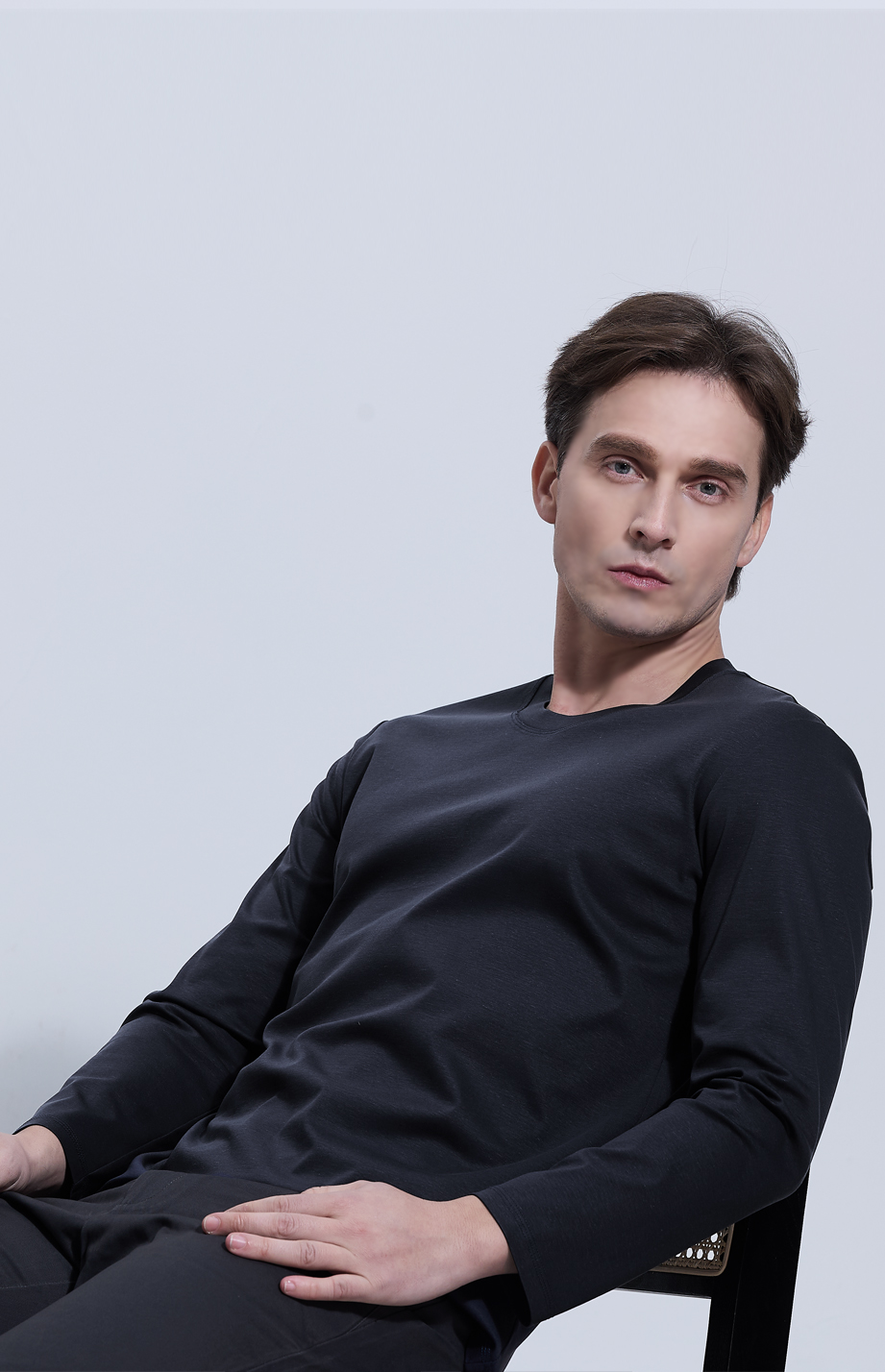| 款名: | 正装蓝30%天丝棉汉麻混纺丝光圆领长袖T恤 | |||||