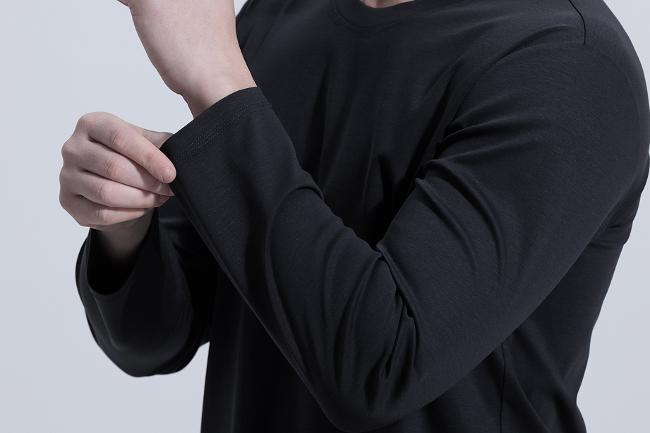| 款名: | 正装蓝30%天丝棉汉麻混纺丝光圆领长袖T恤 | |||