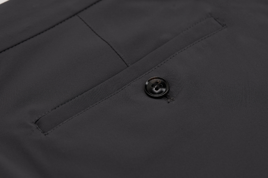 经典单开线挖兜,系扣设计,简洁大方,实用。