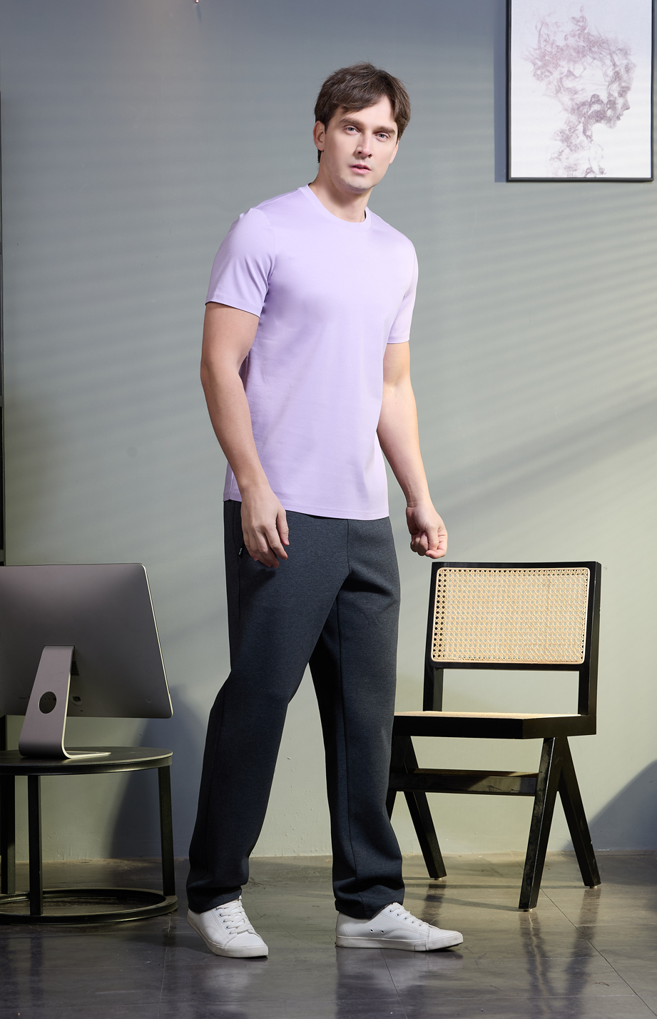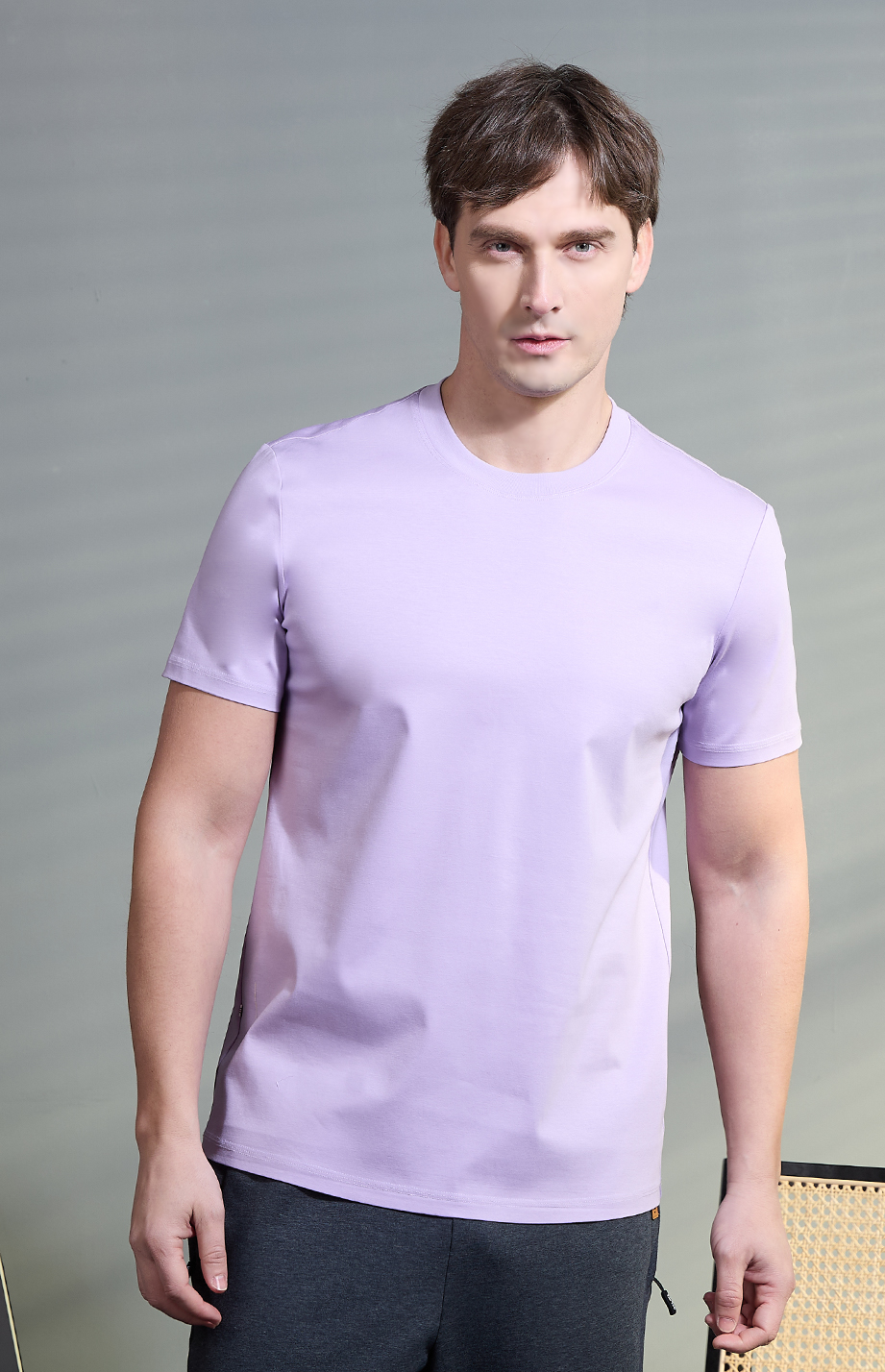 | 款名: | 紫玫瑰63%棉天丝汉麻纤维混纺丝光圆领短袖T恤 | |||