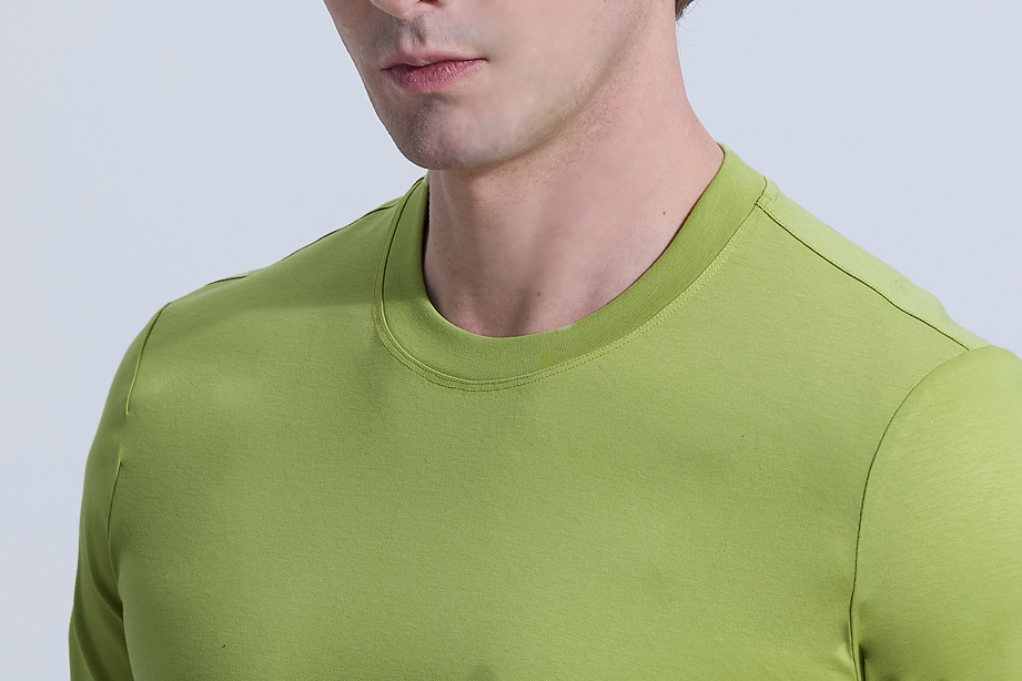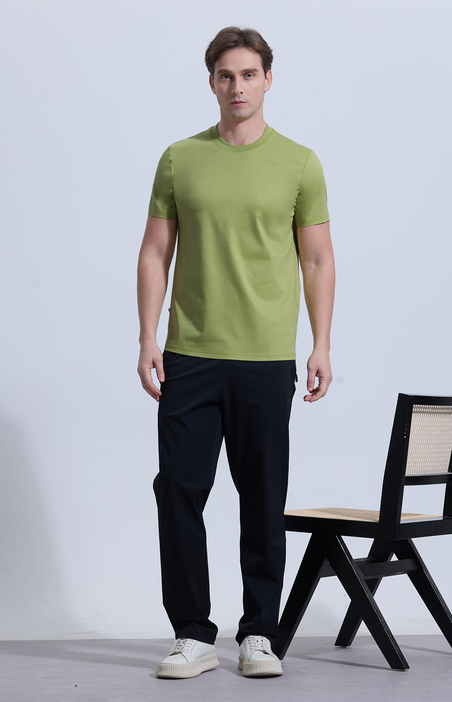 | 款名: | 抹茶绿63%棉天丝汉麻纤维混纺丝光圆领短袖T恤 | |||||