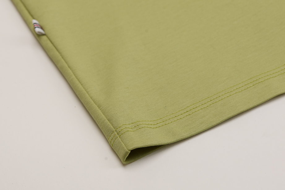 | 款名: | 抹茶绿63%棉天丝汉麻纤维混纺丝光圆领短袖T恤 | |||