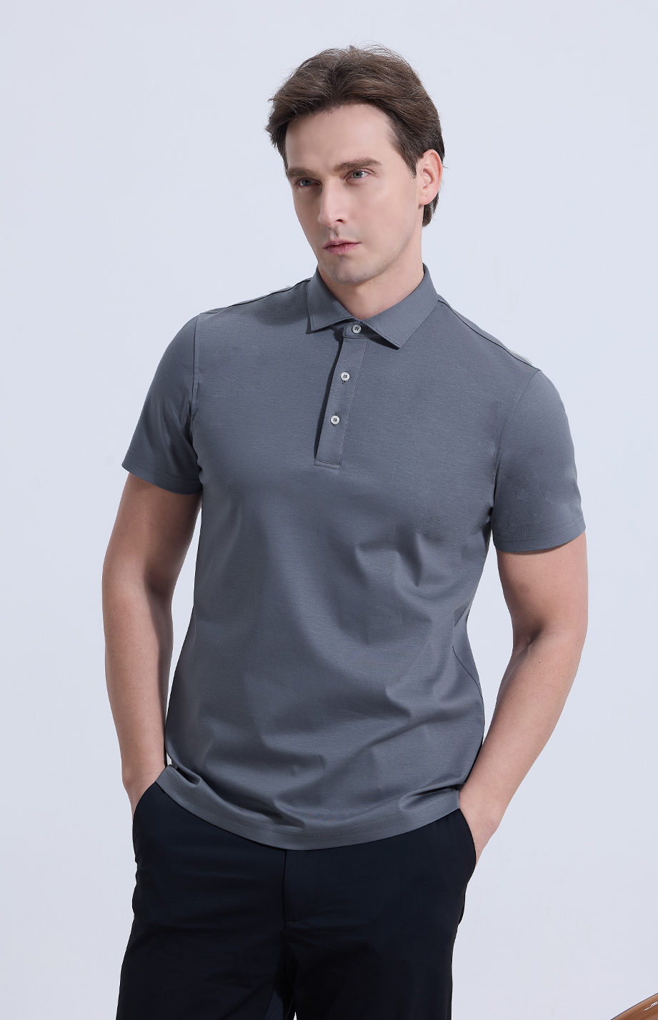 | 款名: | 旋风灰63%棉天丝汉麻纤维混纺丝光短袖polo衫 | |||||