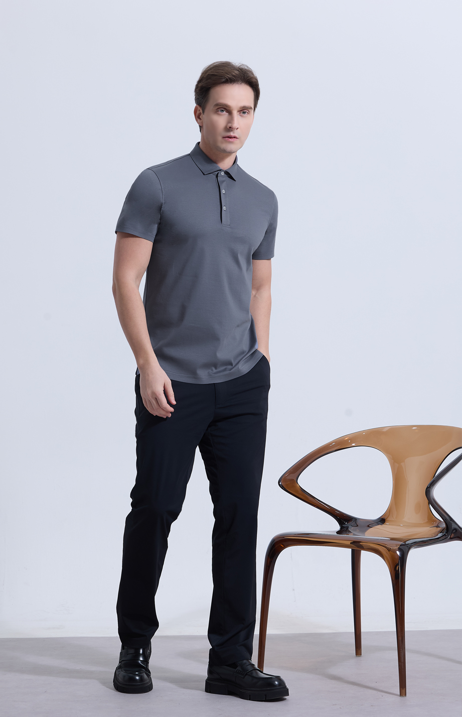| 款名: | 旋风灰63%棉天丝汉麻纤维混纺丝光短袖polo衫 | |||