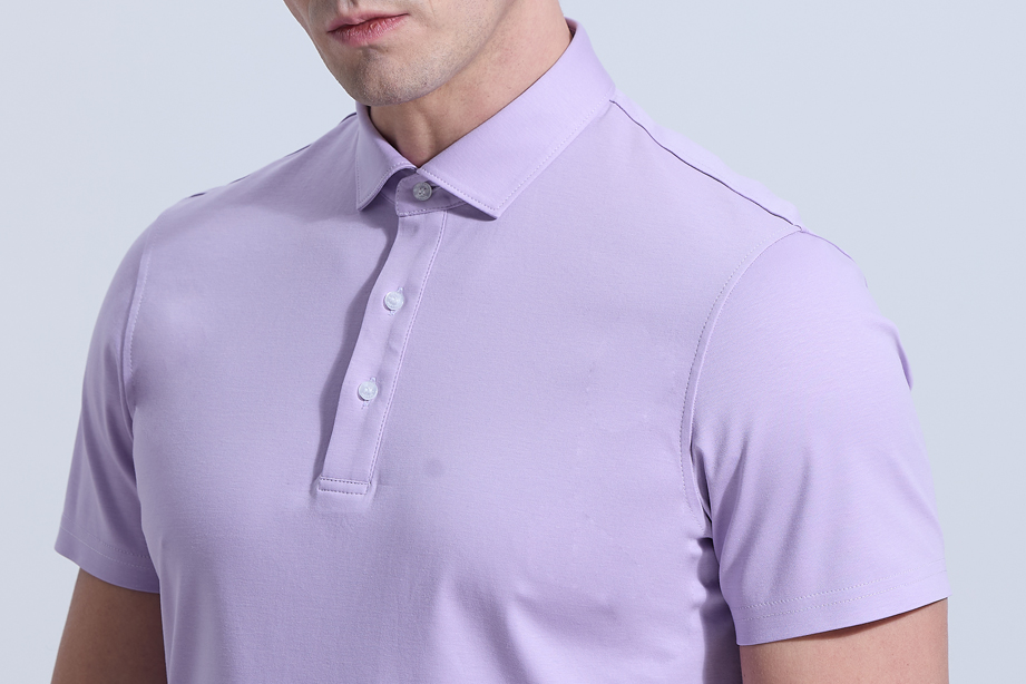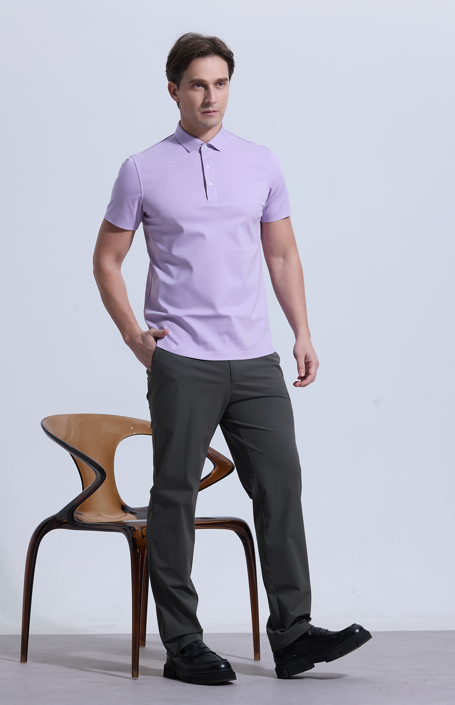 | 款名: | 紫玫瑰63%棉天丝汉麻纤维混纺丝光短袖polo衫 | |||||