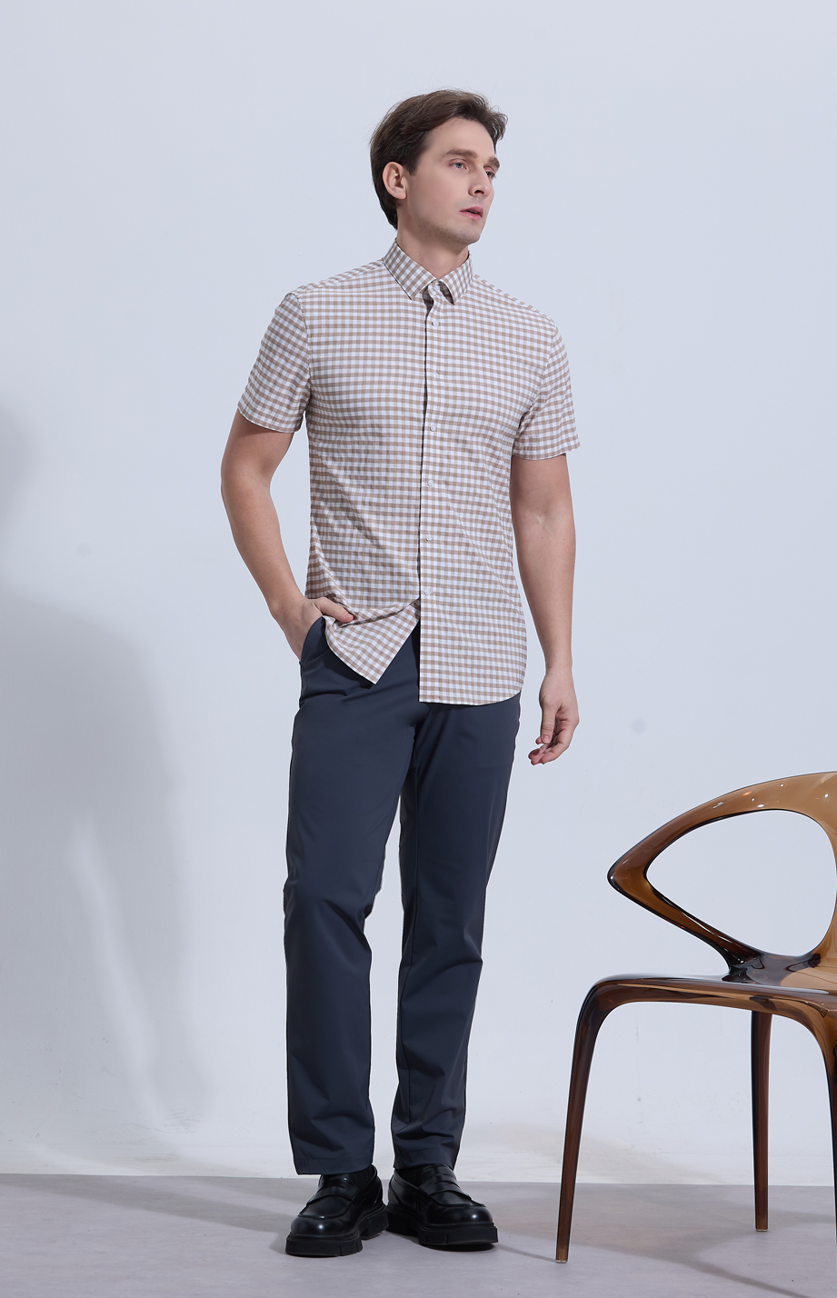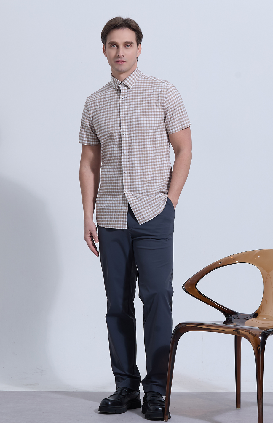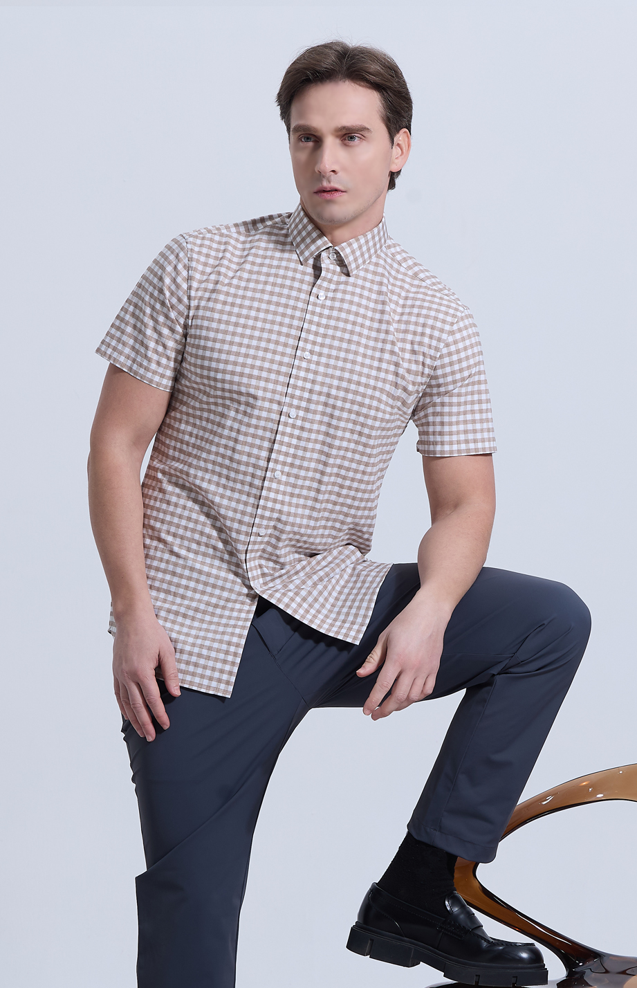 | 款名: | 咖白格丝滑凉爽28%粘胶(竹)聚酯纤维混纺短袖衬衫 | |||