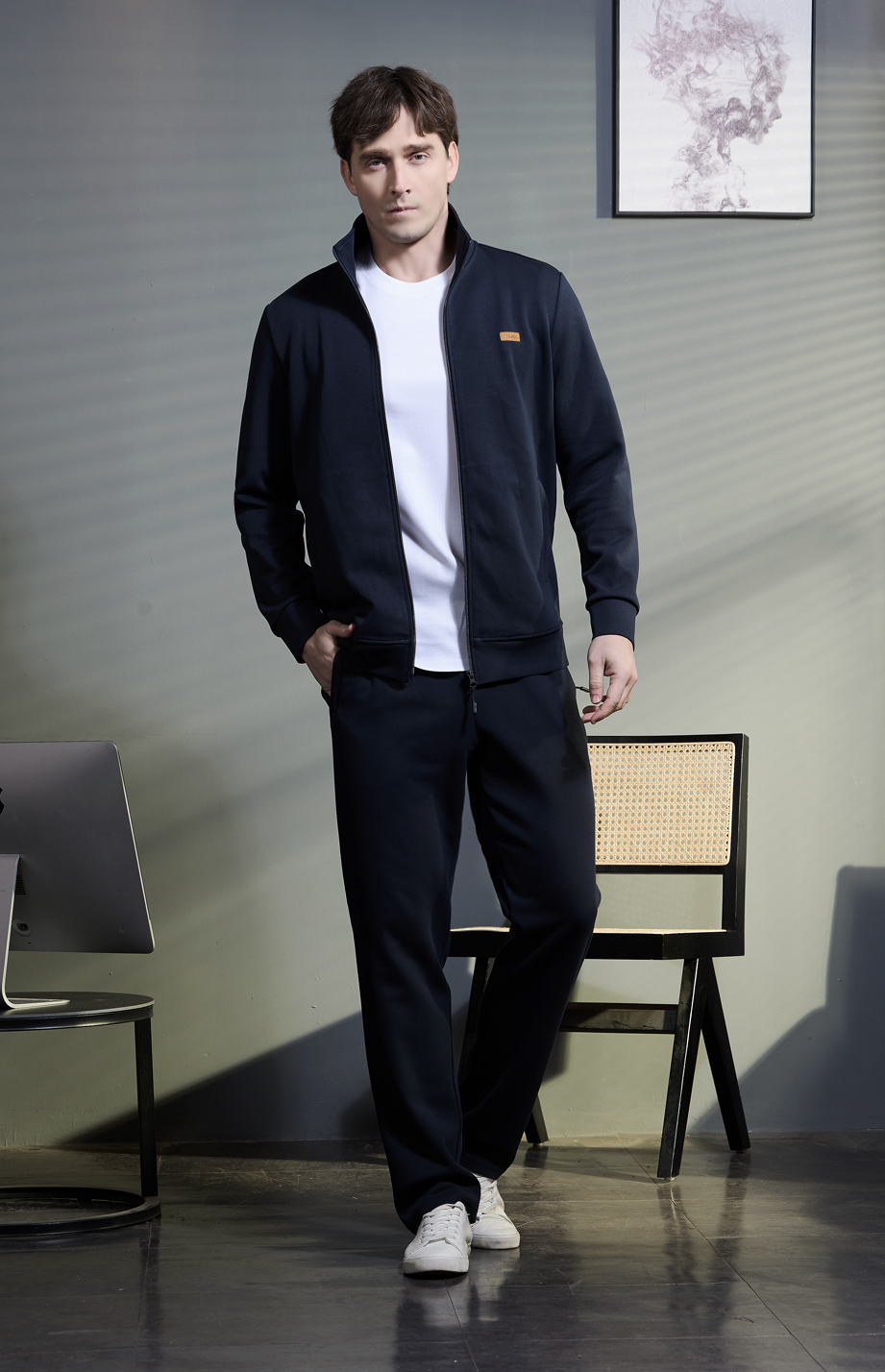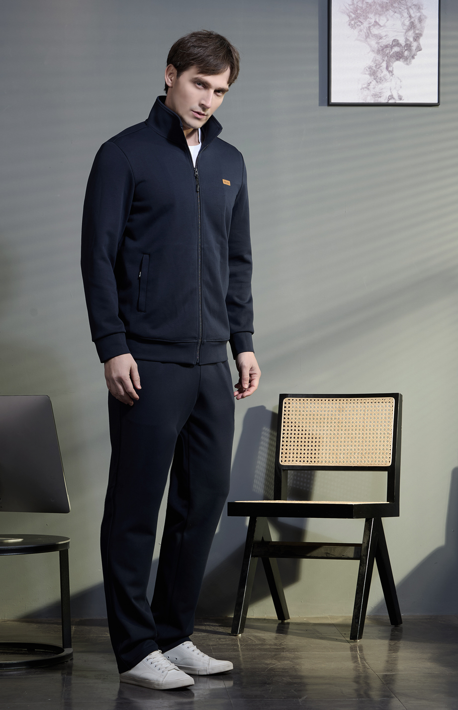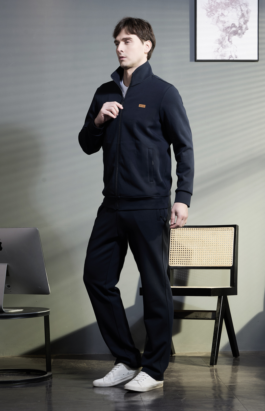| 款名: | 深宝蓝棉聚酯纤维混纺有挂面立翻领春夏商务运动装上衣 | |||