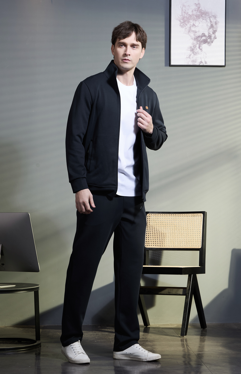 下摆顺色罗纹,舒适又实用。