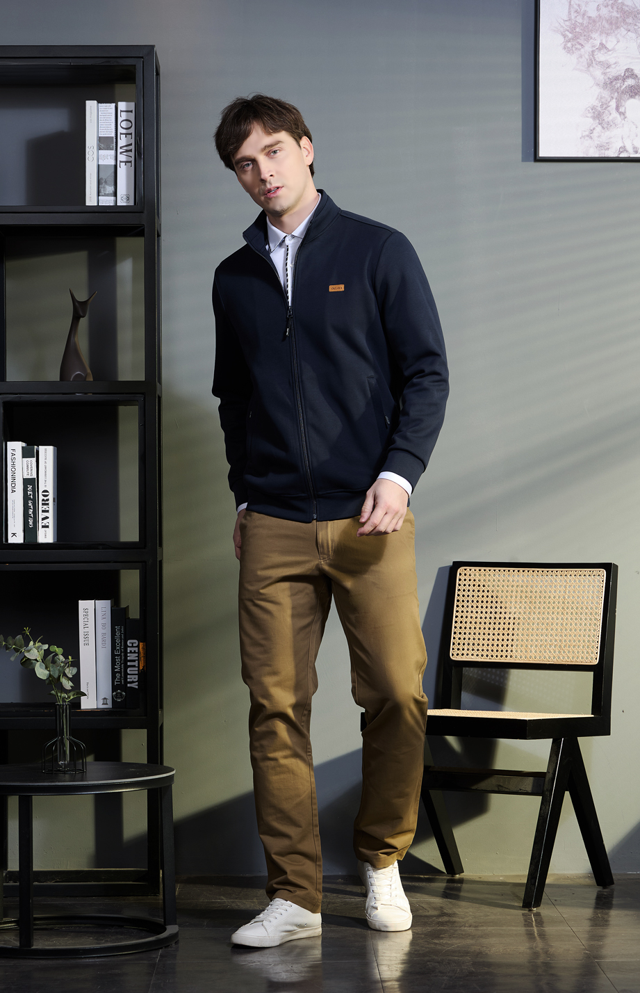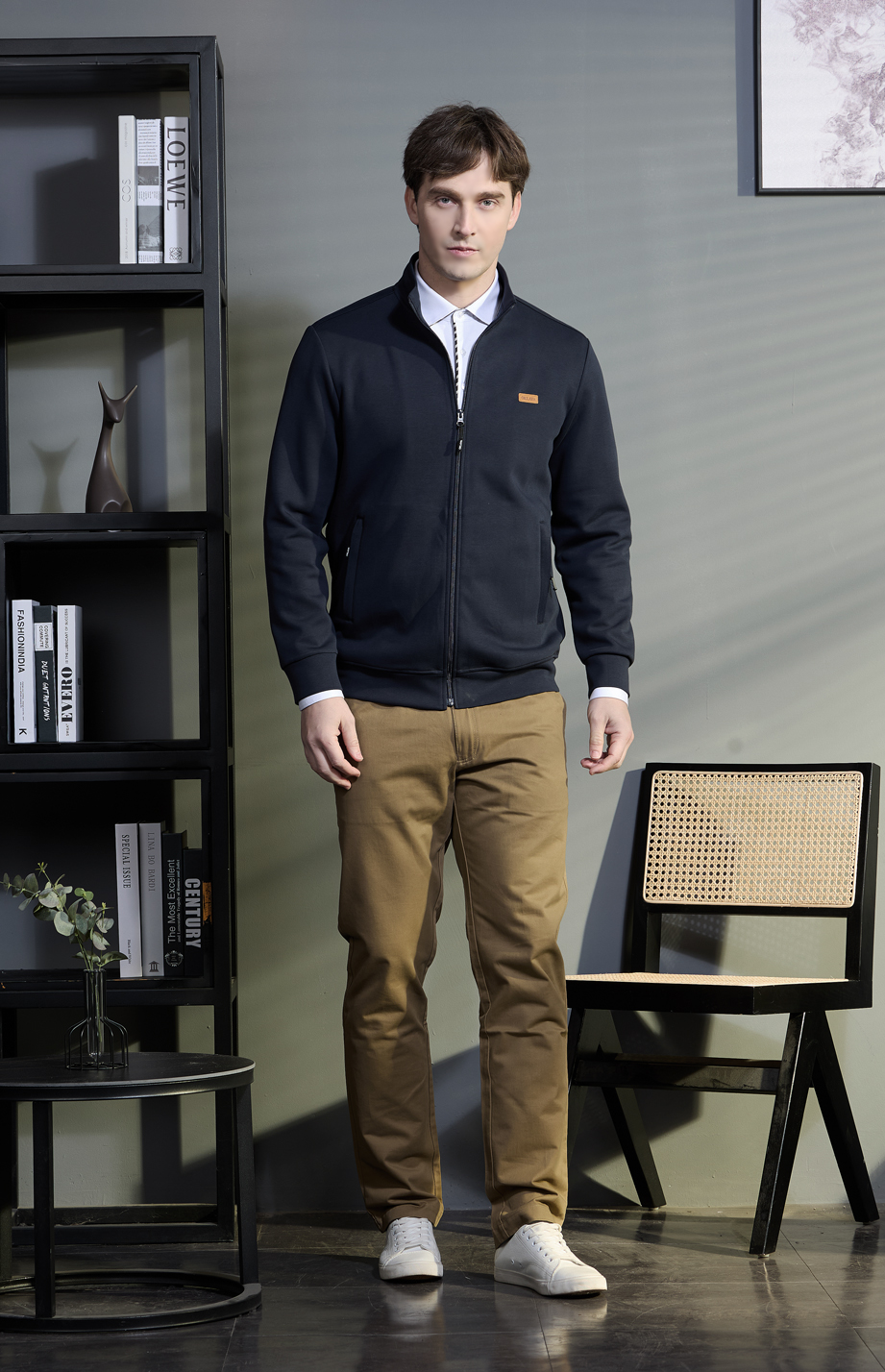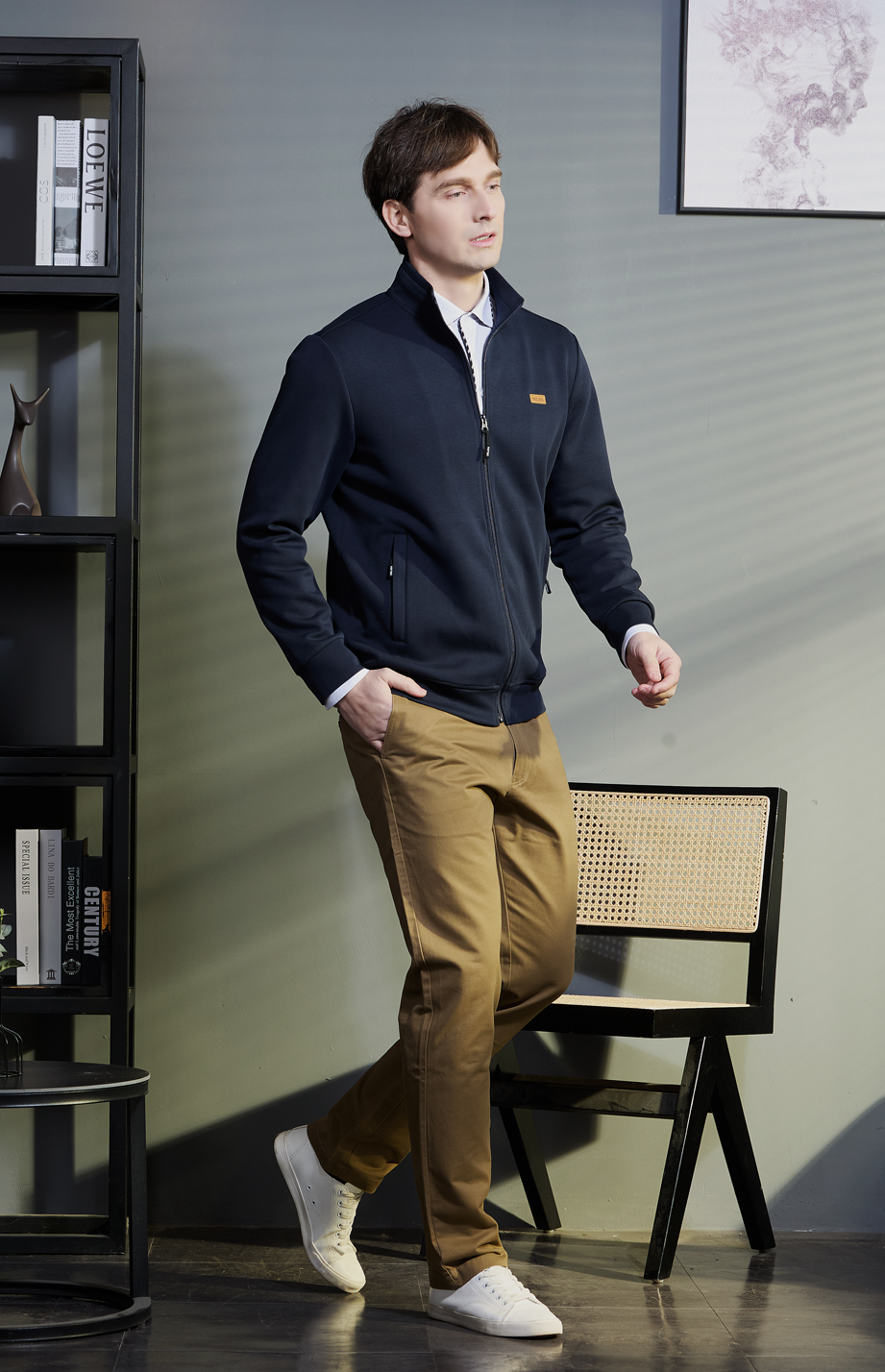 深宝蓝棉聚酯纤维混纺有挂面立领春夏商务运动装上衣 |