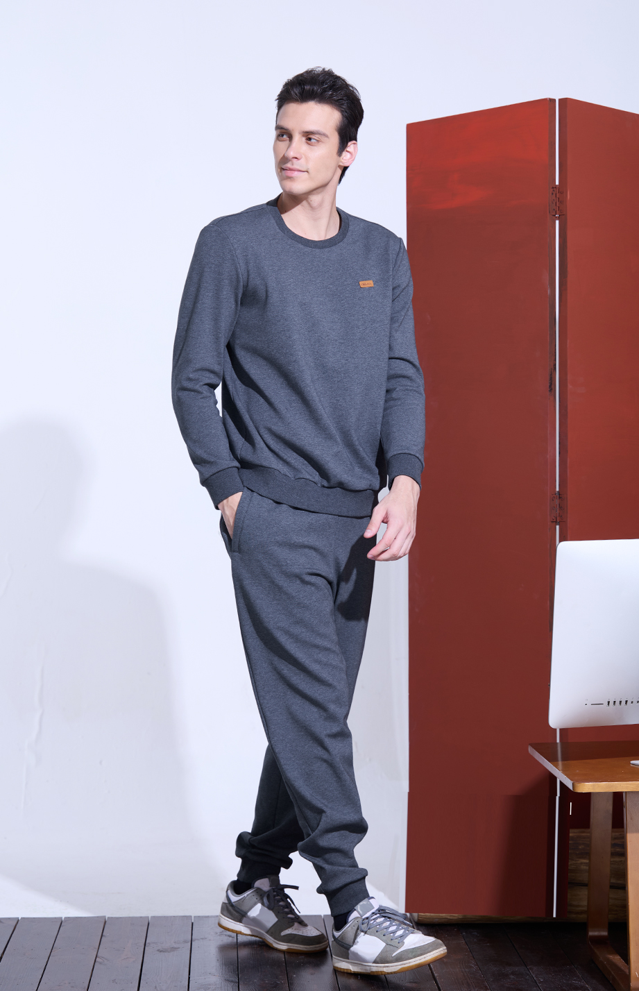 定制卫衣-炭灰色95.3%棉加绒保暖针织圆领卫衣 |