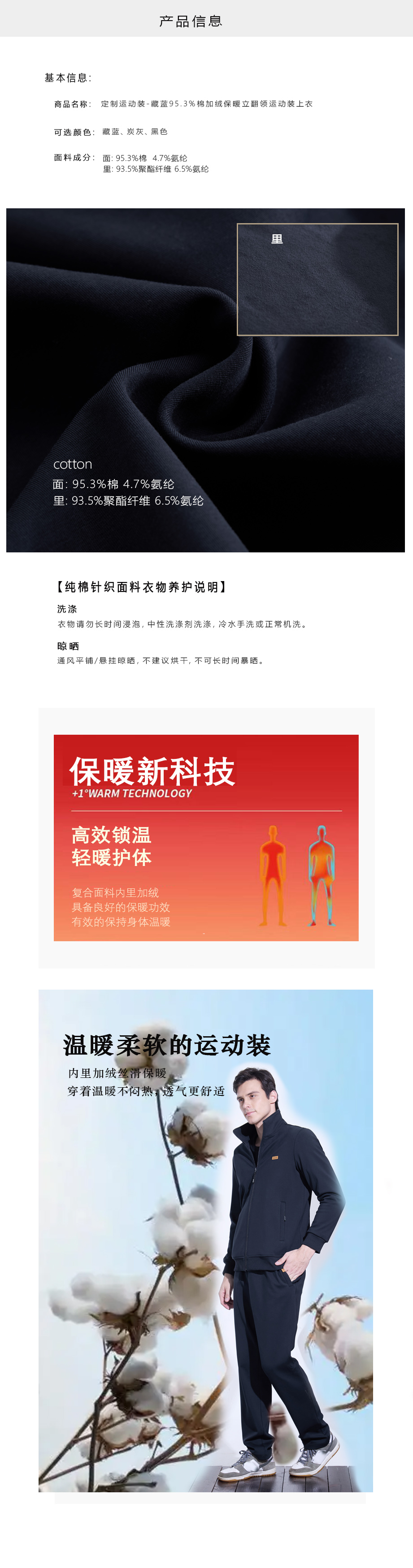 | 款名: | 定制运动装-藏蓝色95.3%棉加绒有挂面立翻领秋冬商务运动装上衣 | |||