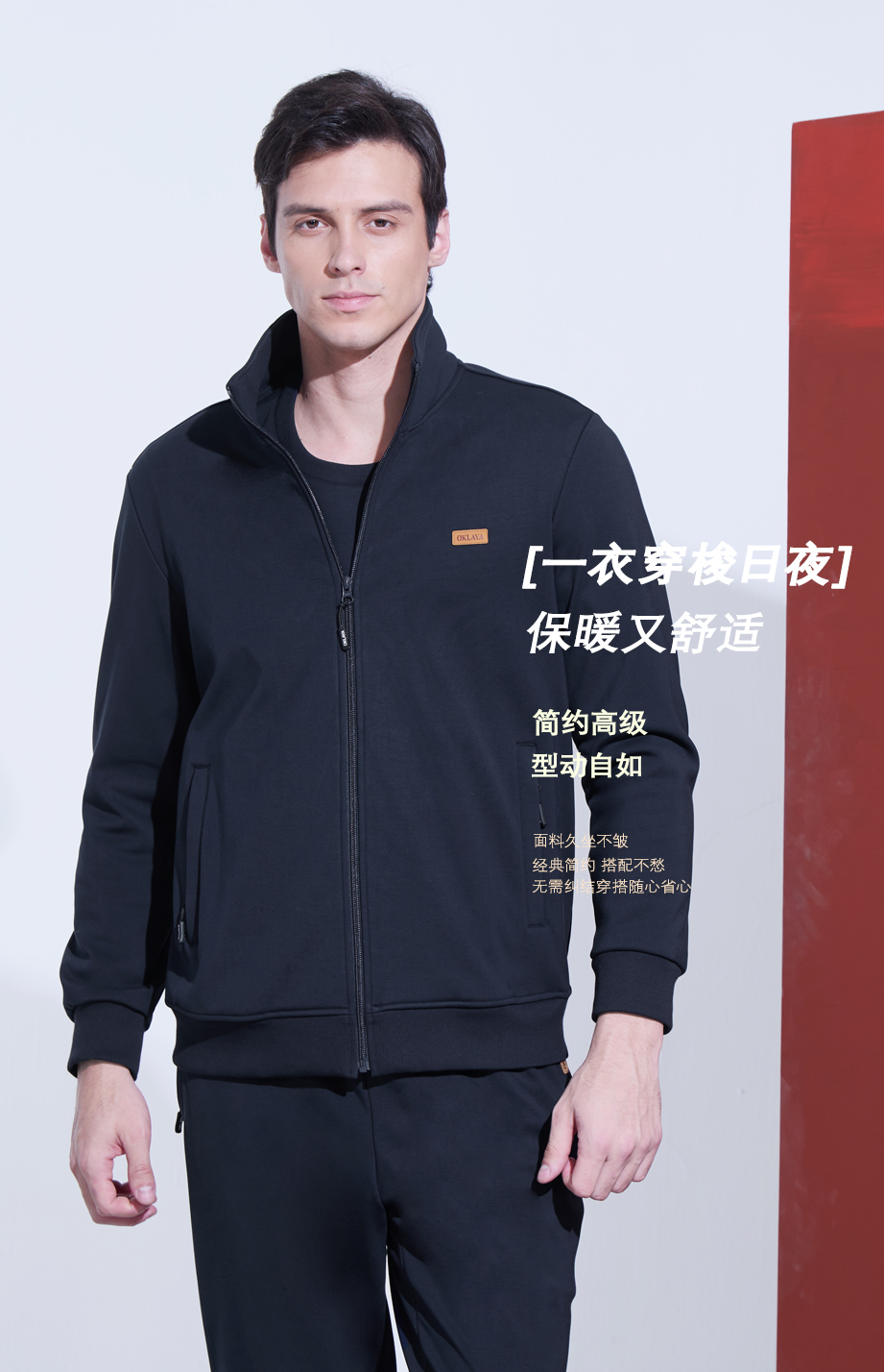 袖头使用简洁的顺色针织罗纹,舒适又有型。