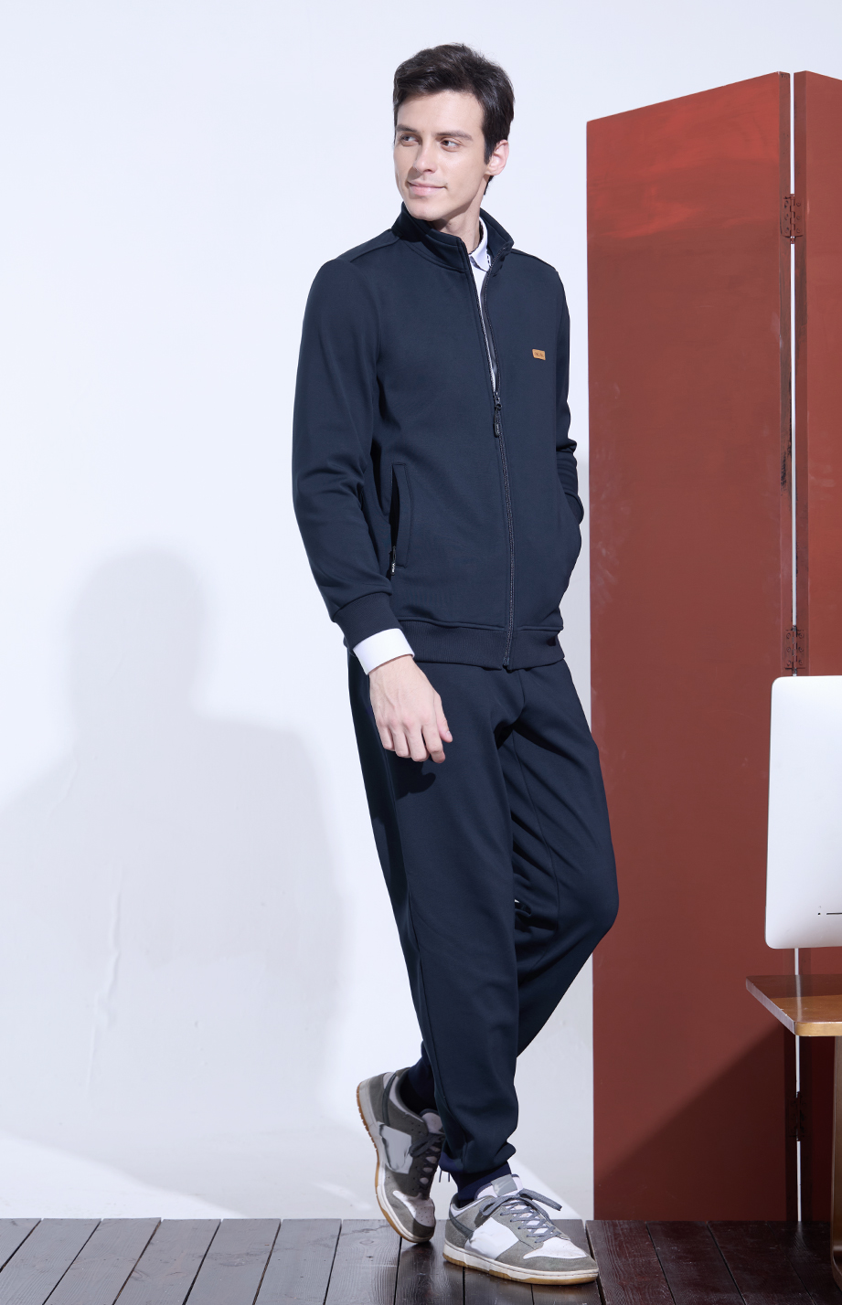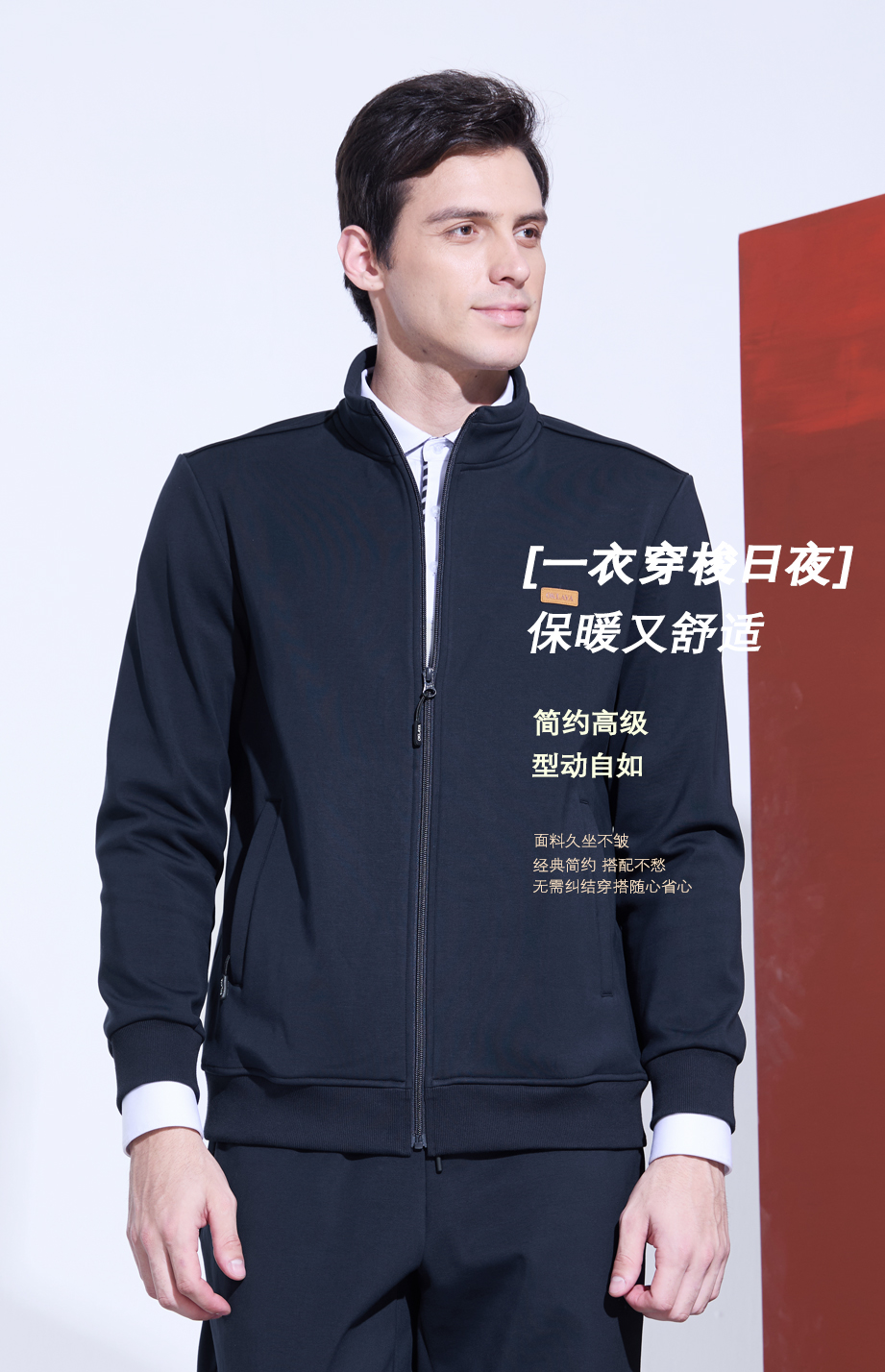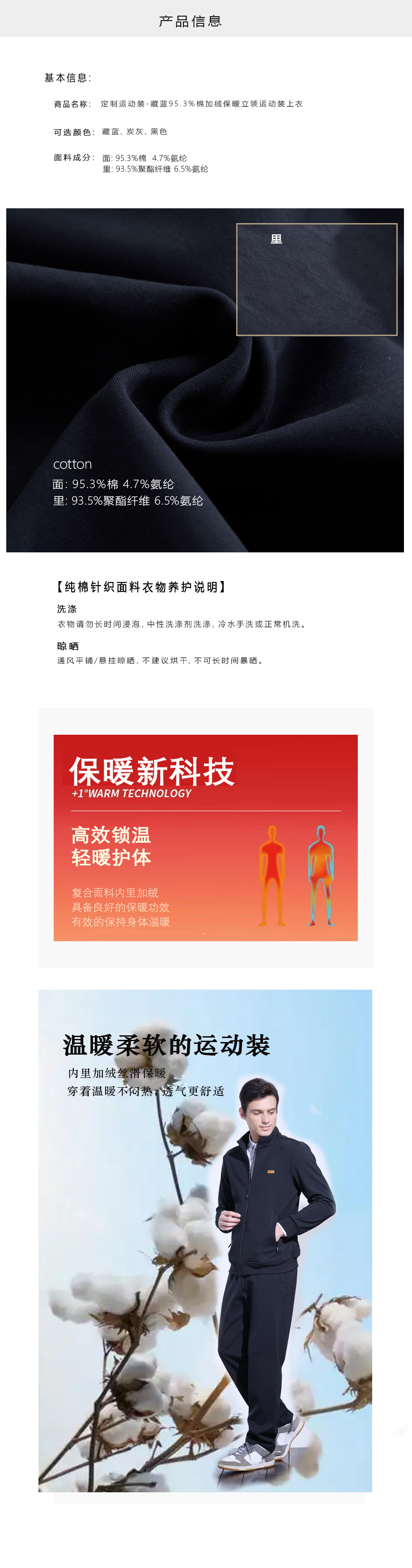 | 款名: | 定制运动装-藏蓝色95.3%棉加绒有挂面立领秋冬商务运动装上衣 | |||