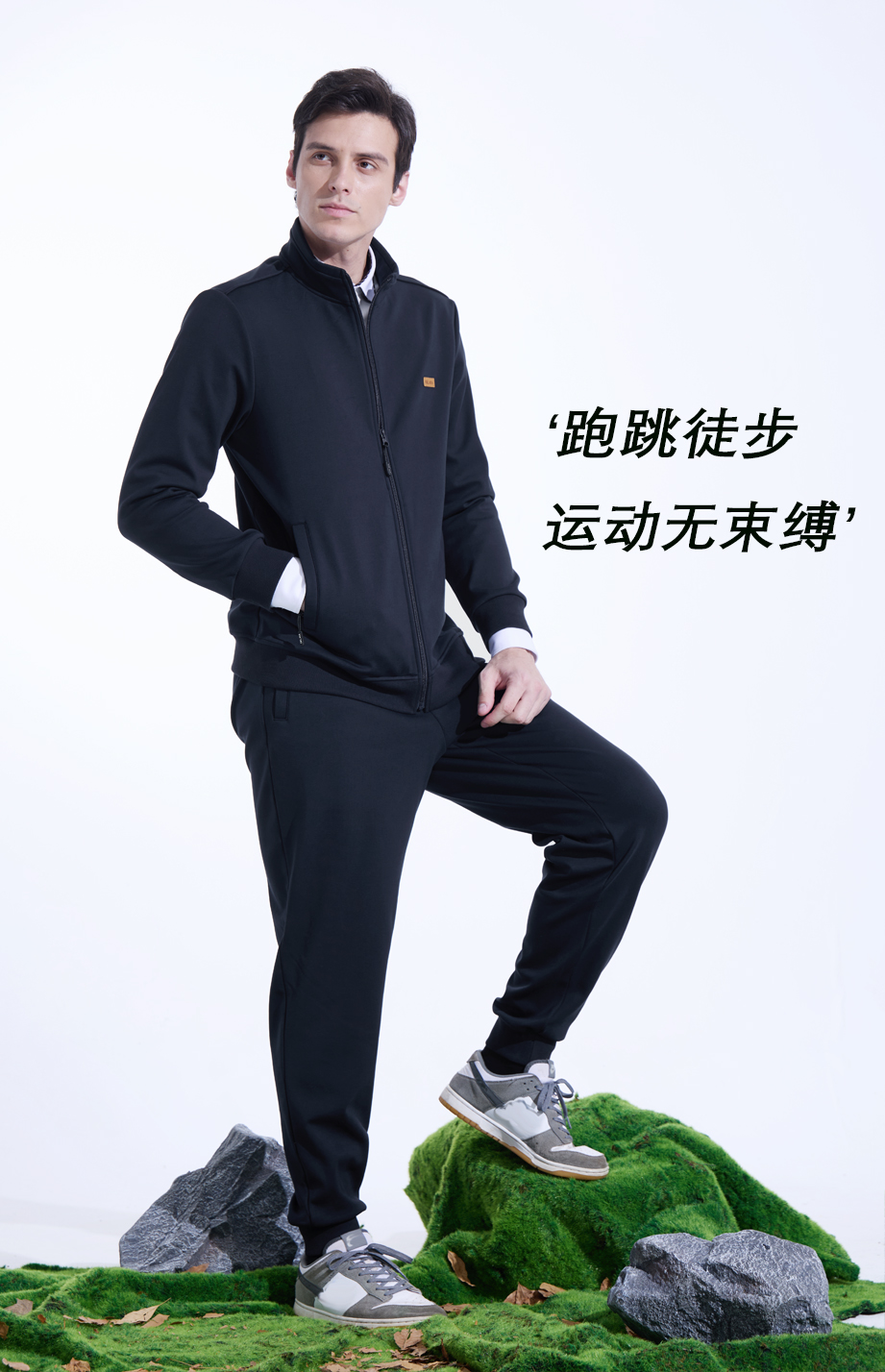 袖头使用简洁的顺色针织罗纹,舒适又有型。
