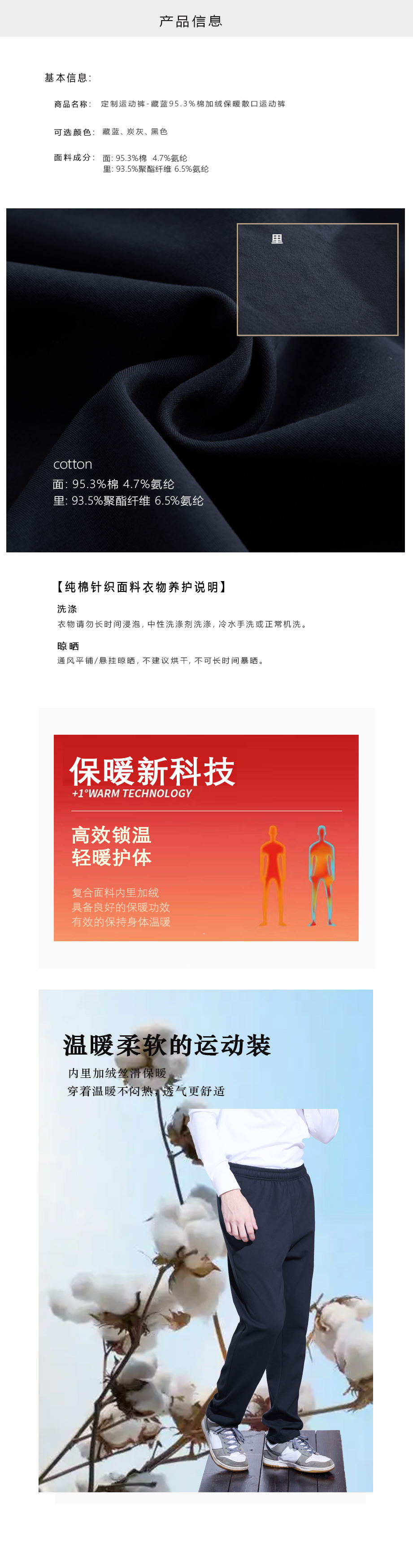 | 款名: | 定制运动裤-藏蓝色95.3%棉加绒保暖散口秋冬运动裤 | |||||