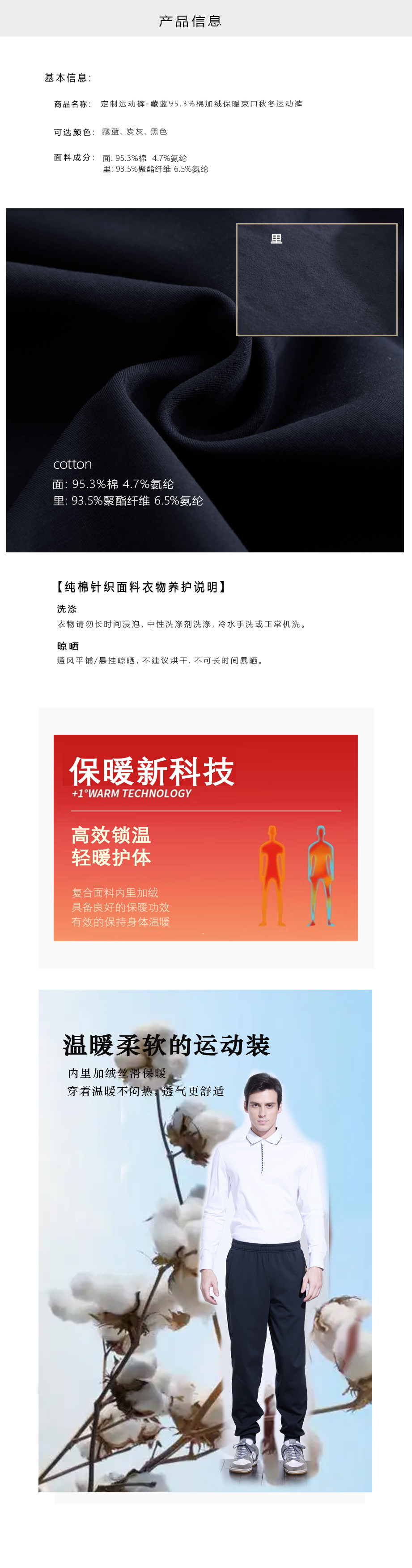 | 款名: | 定制运动裤-藏蓝色95.3%棉加绒保暖秋冬束口运动裤 | |||||