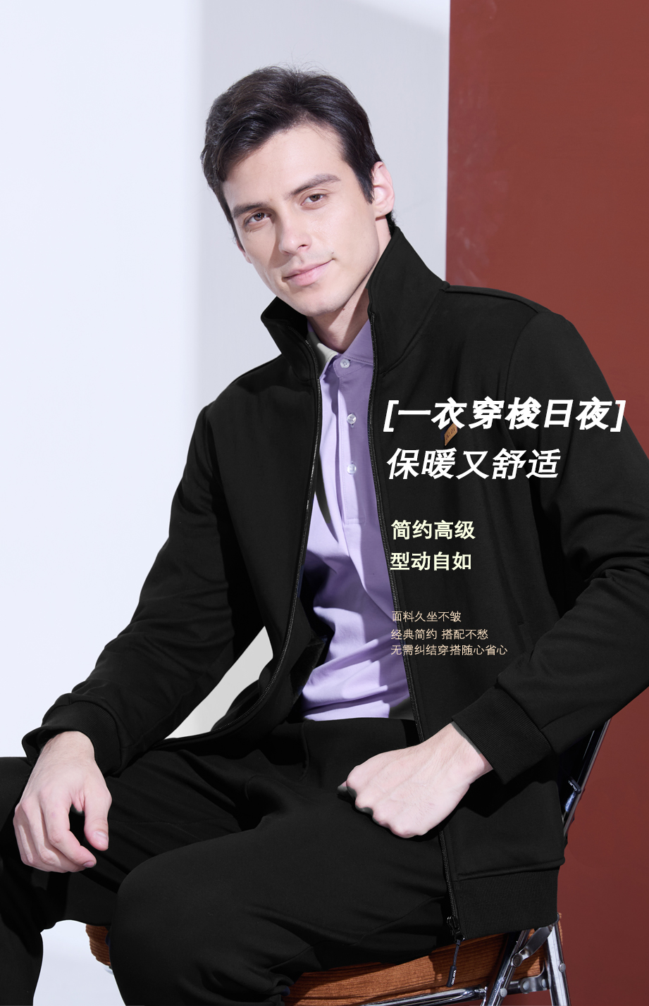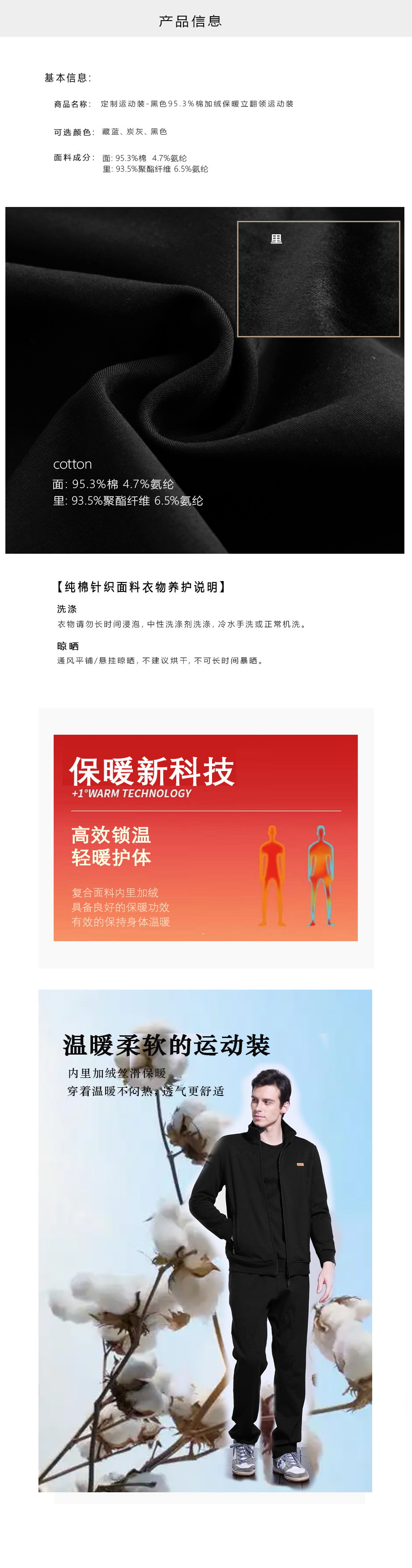| 款名: | 定制运动装-黑色95.3%棉加绒有挂面立翻领秋冬商务运动装上衣 | |||