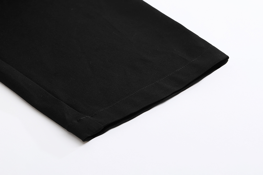 经典腰头设计,平整有型;圆润富有光泽的树脂纽扣,精致美观,十字走线防脱落。