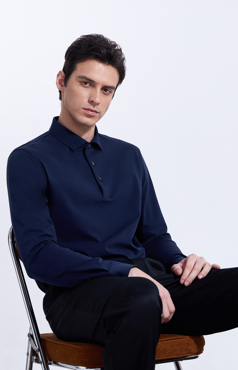 | 款名: | 定制polo衫-深蓝色90%棉舒适丝光长袖POLO | |||||