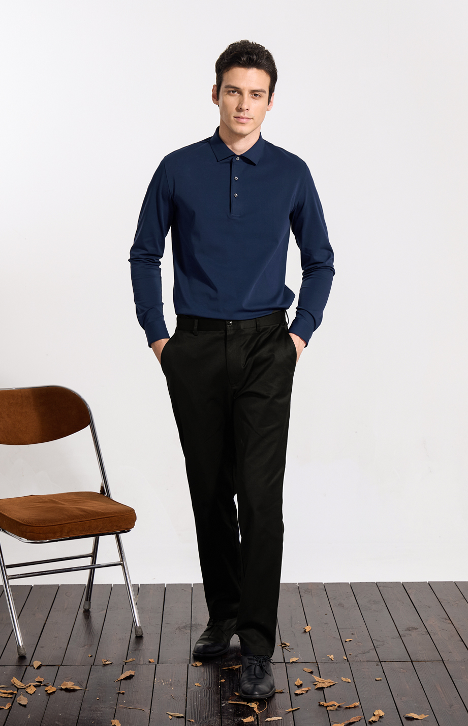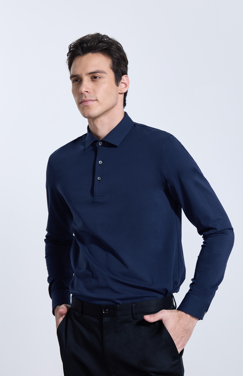 | 款名: | 定制polo衫-深蓝色90%棉舒适丝光长袖POLO | |||