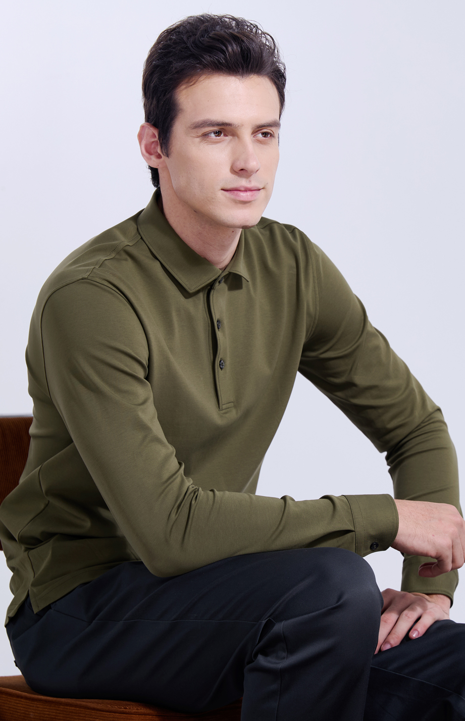 | 款名: | 定制polo衫-绿色90%棉舒适丝光长袖POLO | |||