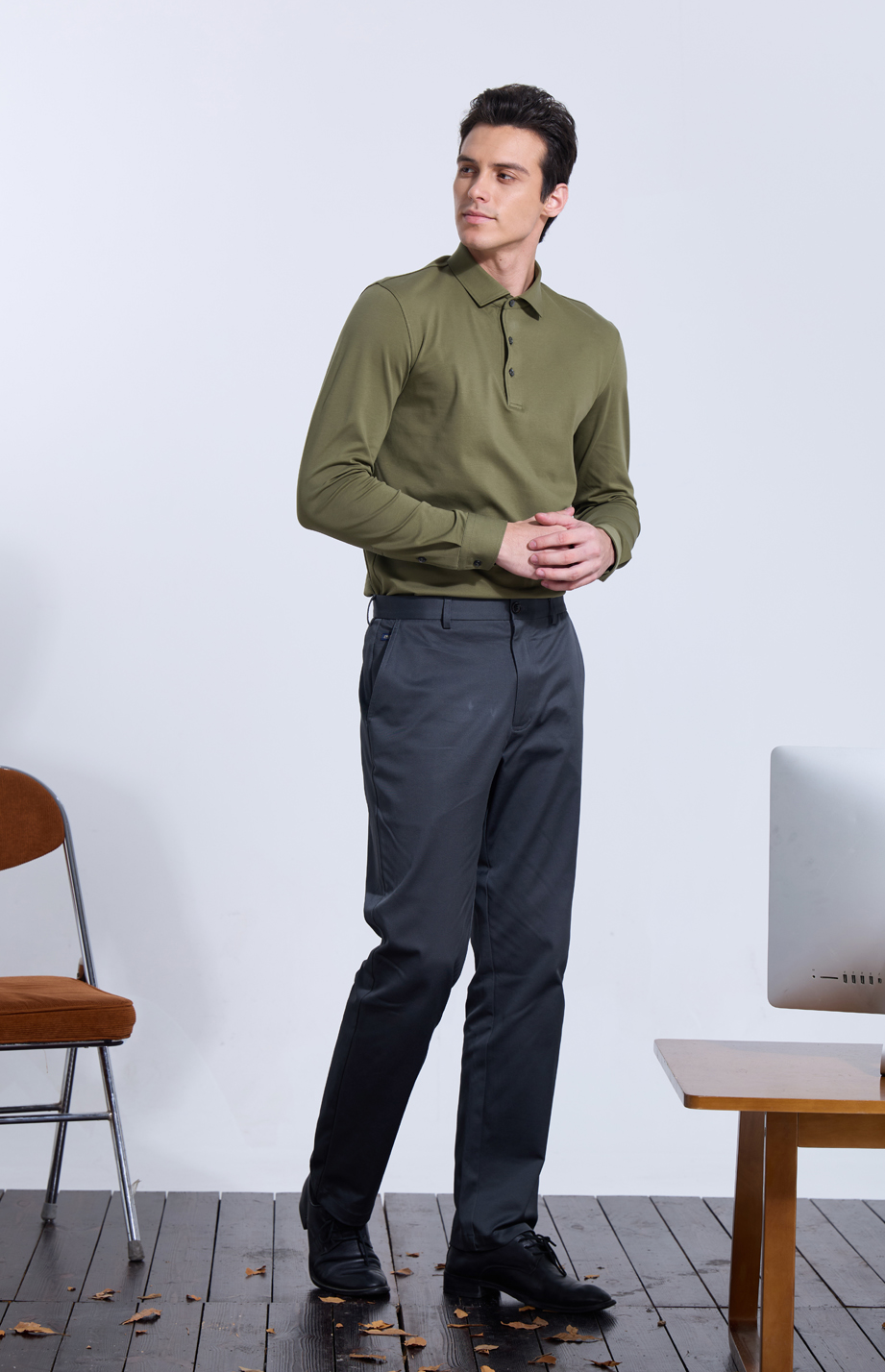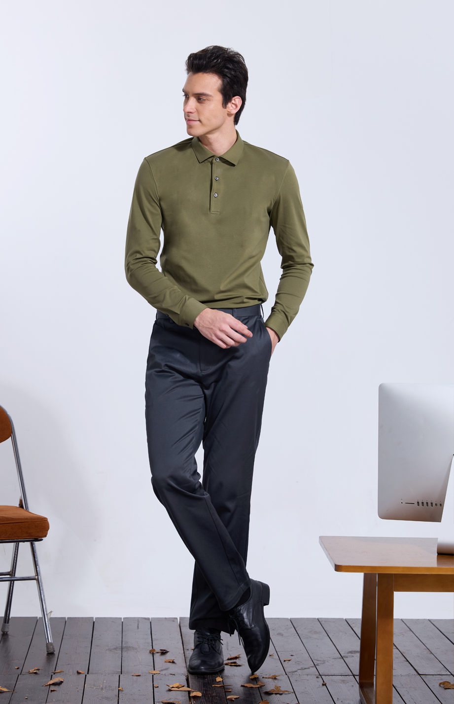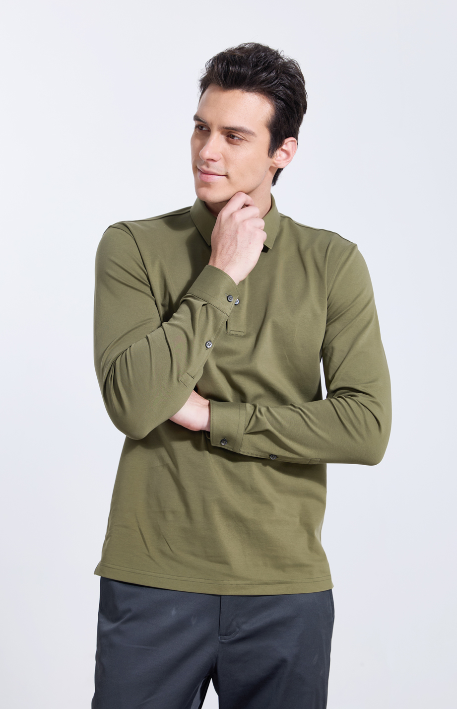 | 款名: | 定制polo衫-绿色90%棉舒适丝光长袖POLO | |||||